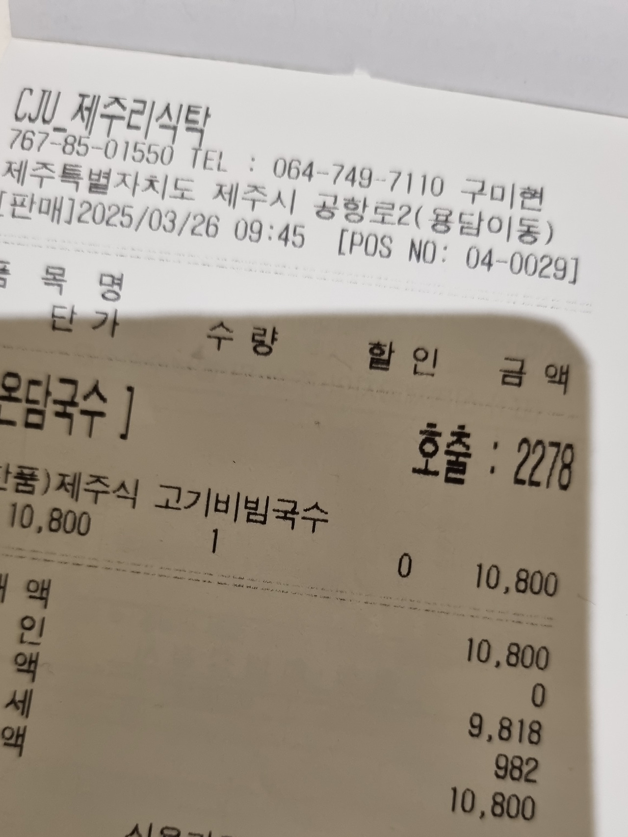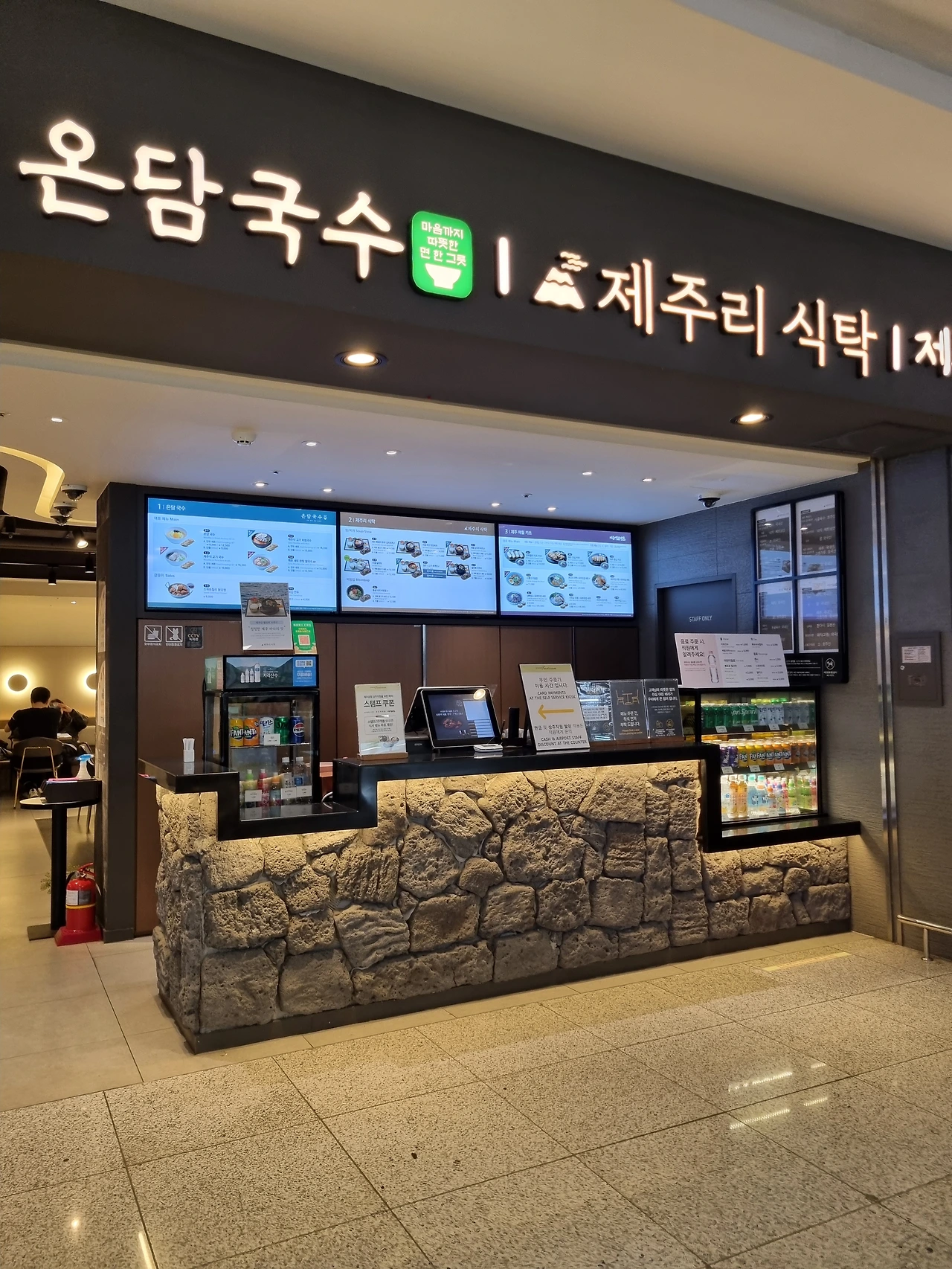 메뉴는 제주돔베고기국수(단품)다. 비자림 숲 갈 때마다 입구에 있는 '비자림국수'에서 즐겨 먹던 메뉴인데 이걸 공항에서 먹다니!