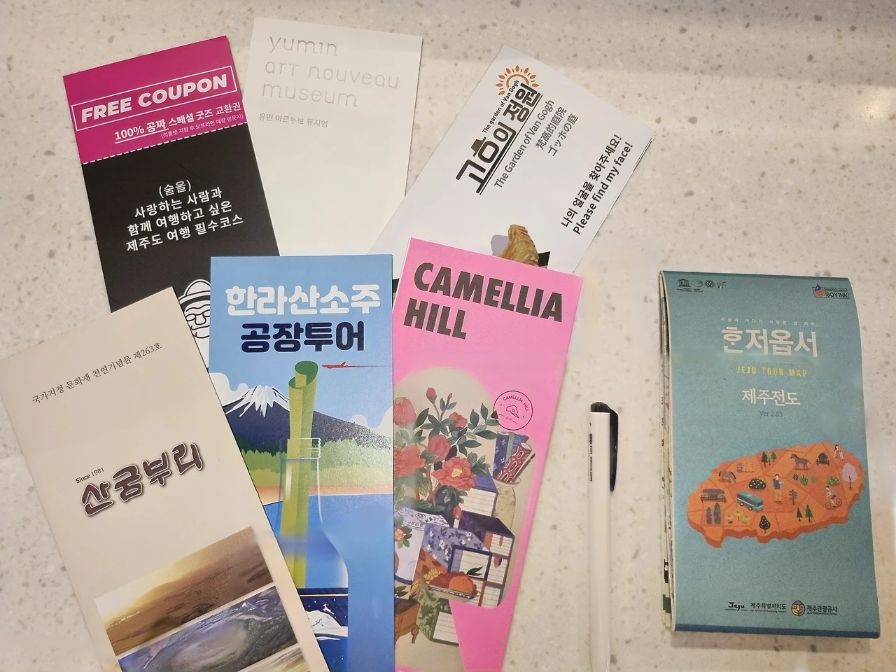 가보고 싶은 곳의 팸플릿을 챙기다. 지도 보면서 위치선정을 한 후 공항을 나선다.