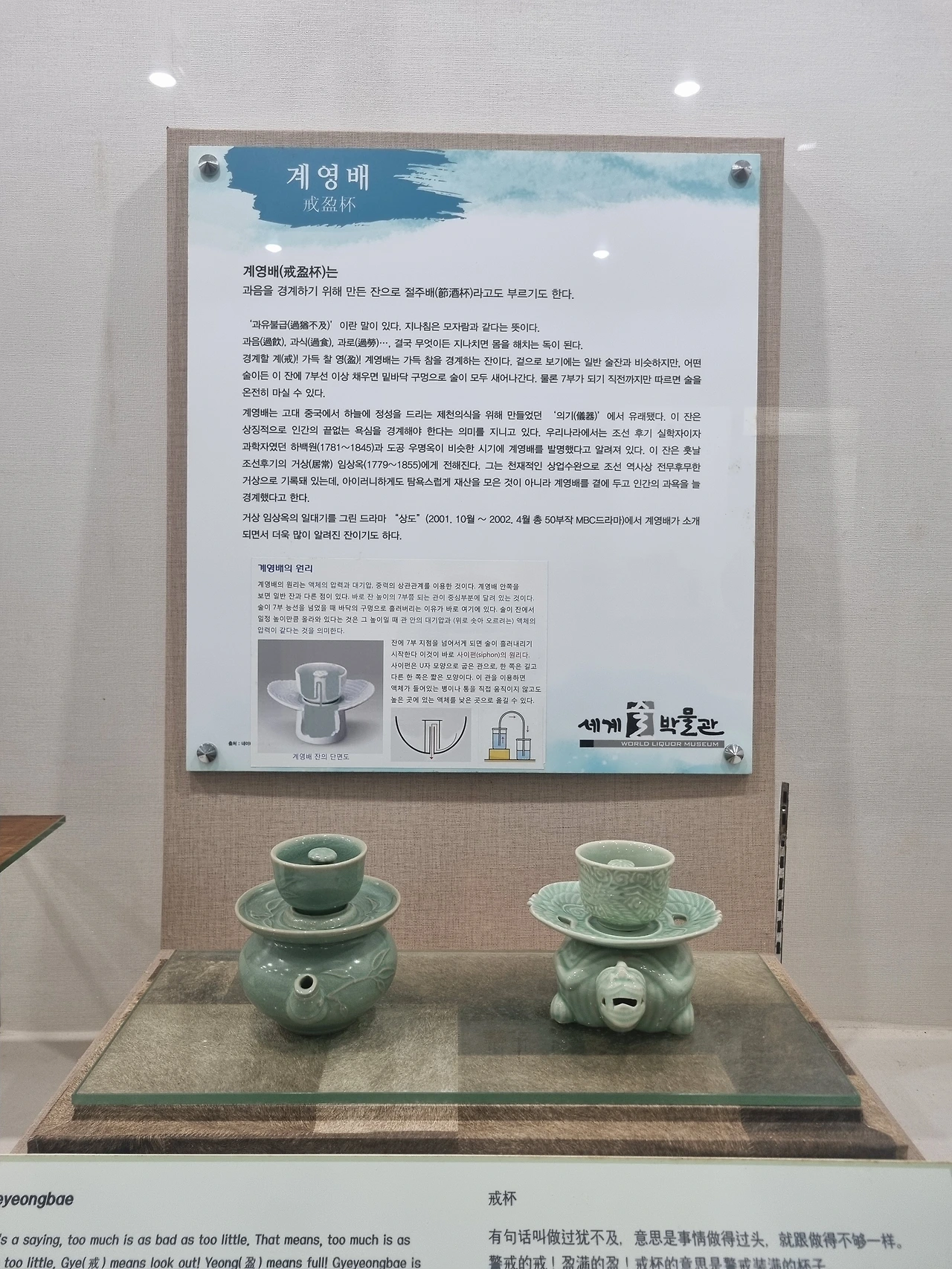계영배라는 절주를 위한 잔은 내게 필요한 것으로 보인다. 겉으로 보기엔 일반 술잔과 비슷하나 7부 이상을 채우면 밑바닥 구멍으로 술이 빠져나간다. 이는 '인간의 끝없는 욕심을 경계해야 한다.'는 의미를 가지고 있다.