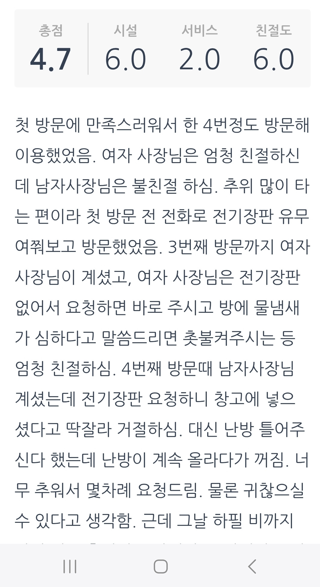 사람마다 느끼는 온도차가 다른데 직원의 대응이 미흡했다.