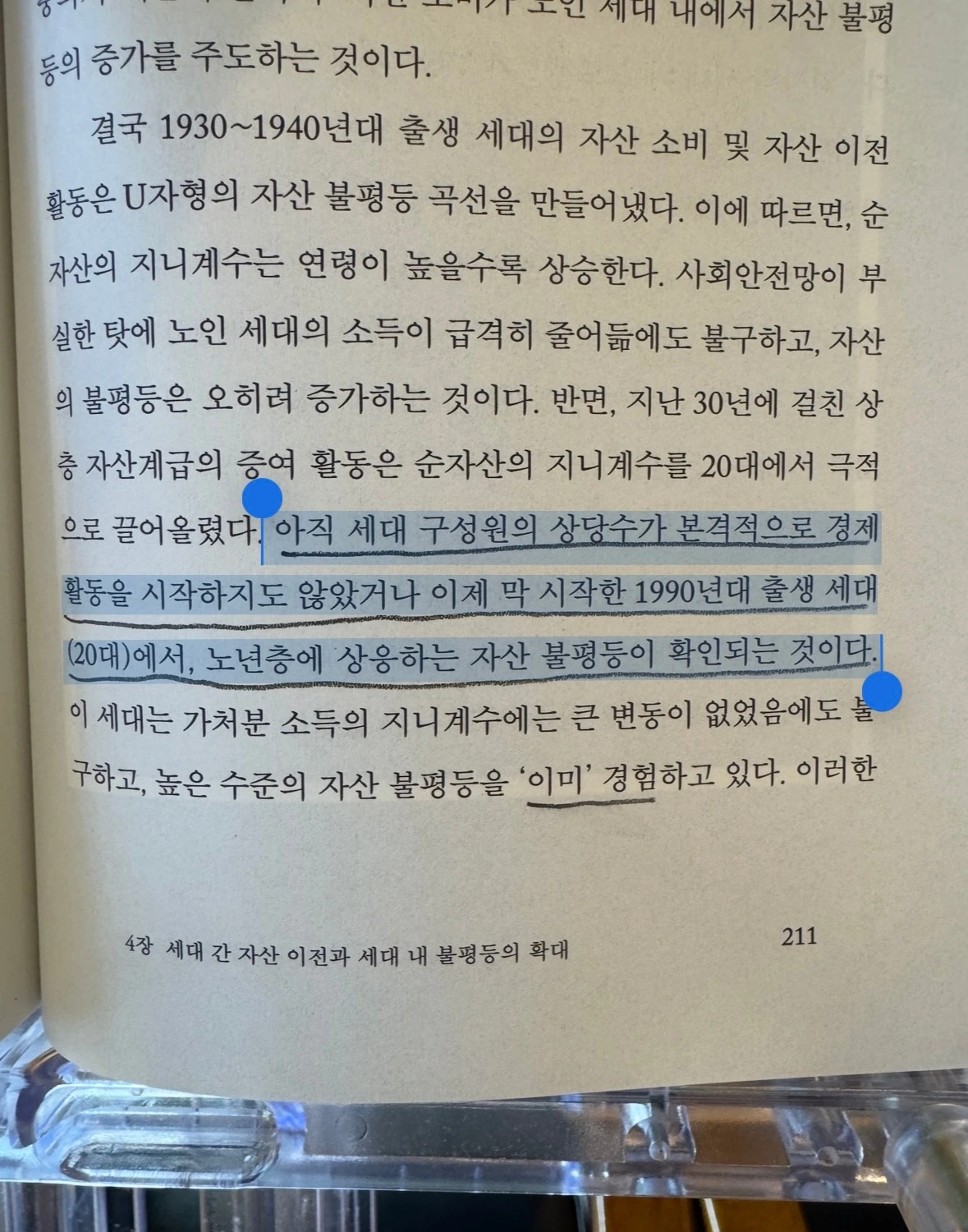 상속은 불평등을 한 번 더 증폭시킨다. 산업화 세대의 자산은 상속을 통해 다음 세대로 넘어가고, 386세대의 상속 또한 뒤따르며 격차를 다시 고정한다. 그 사이 청년 세대는 일자리 부족과 상층 진입을 둘러싼 과열 경쟁에 내몰리고, 여성은 상층 노동시장에서 더 자주 배제·차별된다. 한마디로, 세대 독점과 위계구조가 핵심이다.