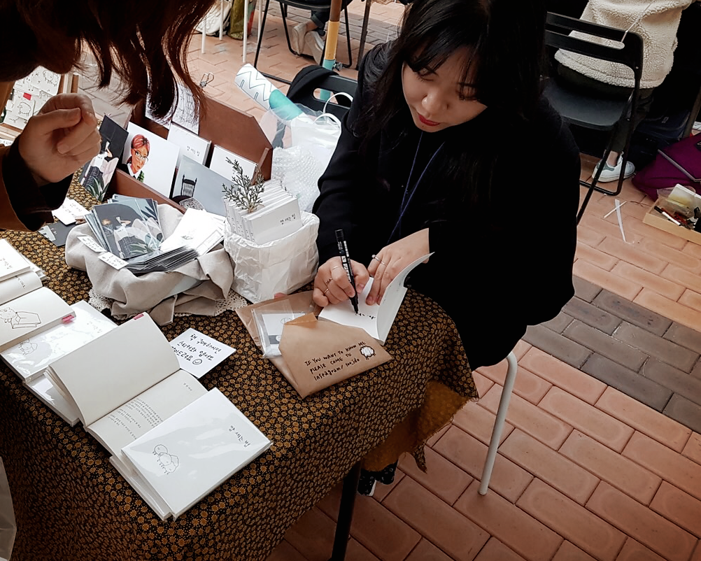 주변사람에게 기념으로 책에 싸인 해준적은 있었지만 현장구매하신 독자님의 싸인요청은 처음이었다. 성함을 물어보고 싸인하고 글씨를 쓰는데