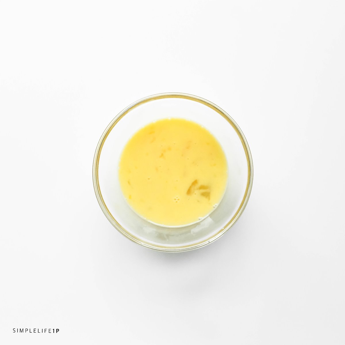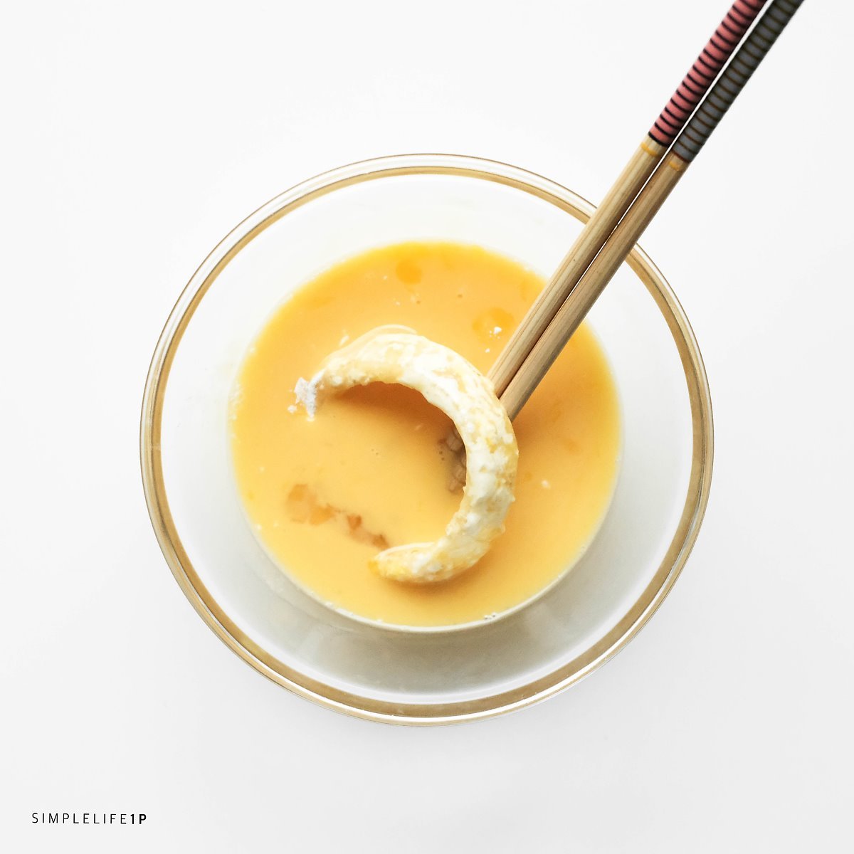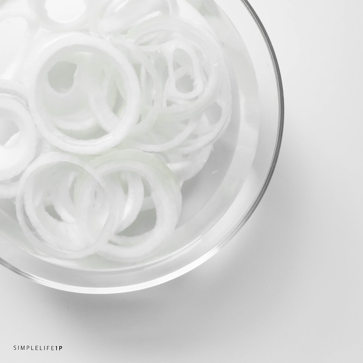 볼에 달걀을 풀어주세요. 양파를 링으로 썰어주세요. 링으로 썬 양파를 약 5분간 물에 담가 매운기를 빼주세요.