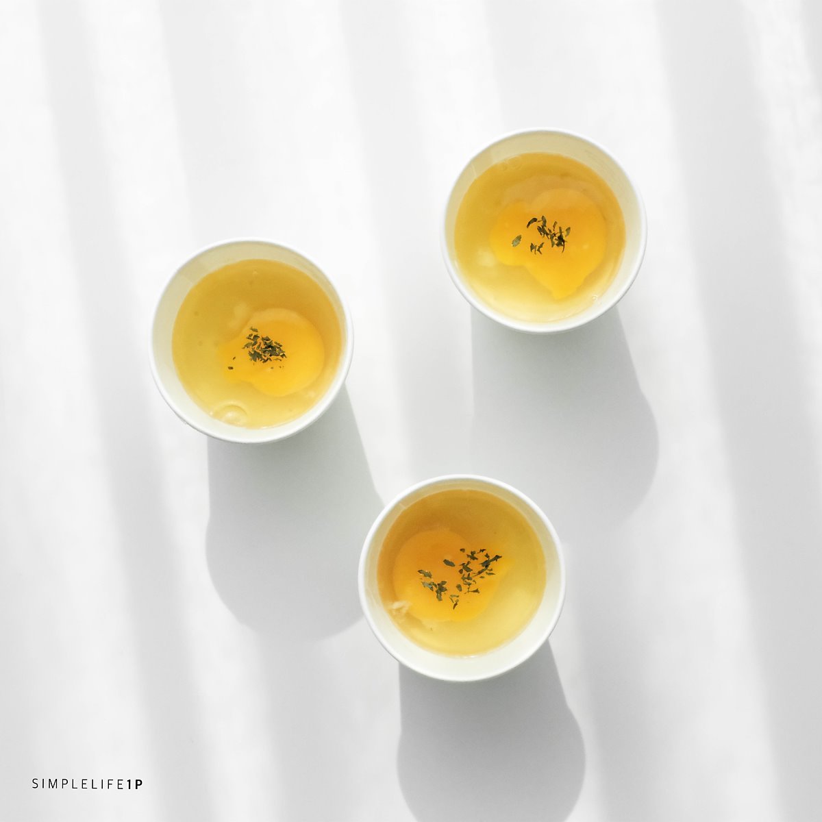 종이컵에 반죽을 1/3 정도로 부어주세요. 반죽 위에 달걀을 올려주세요. 포크를 이용해 달걀노른자를 콕 찍어 깨트려주세요. 소량의 파슬리를 뿌려주세요. 에어프라이어에 종이컵을 넣은 후 160도에서 약 15분간 돌려주세요.