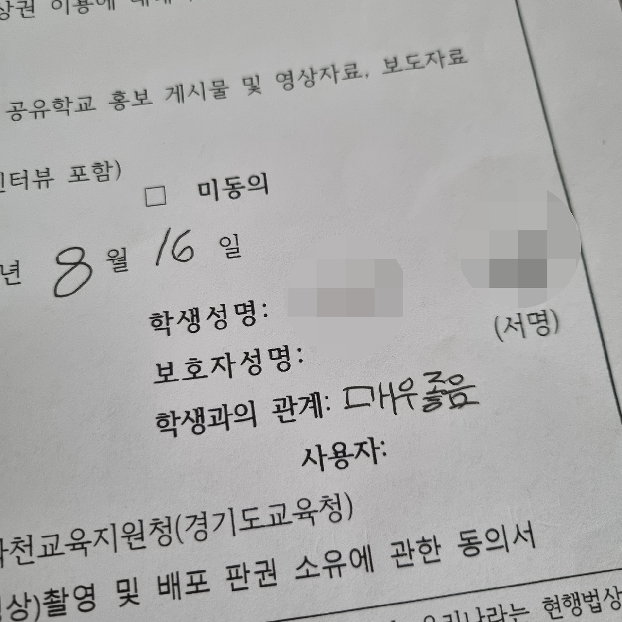 중학생 딸이 개인정보동의서를 내밀었다. 내 사인을 요구했다. 서류를 보고 빵 터지고야 말았다.