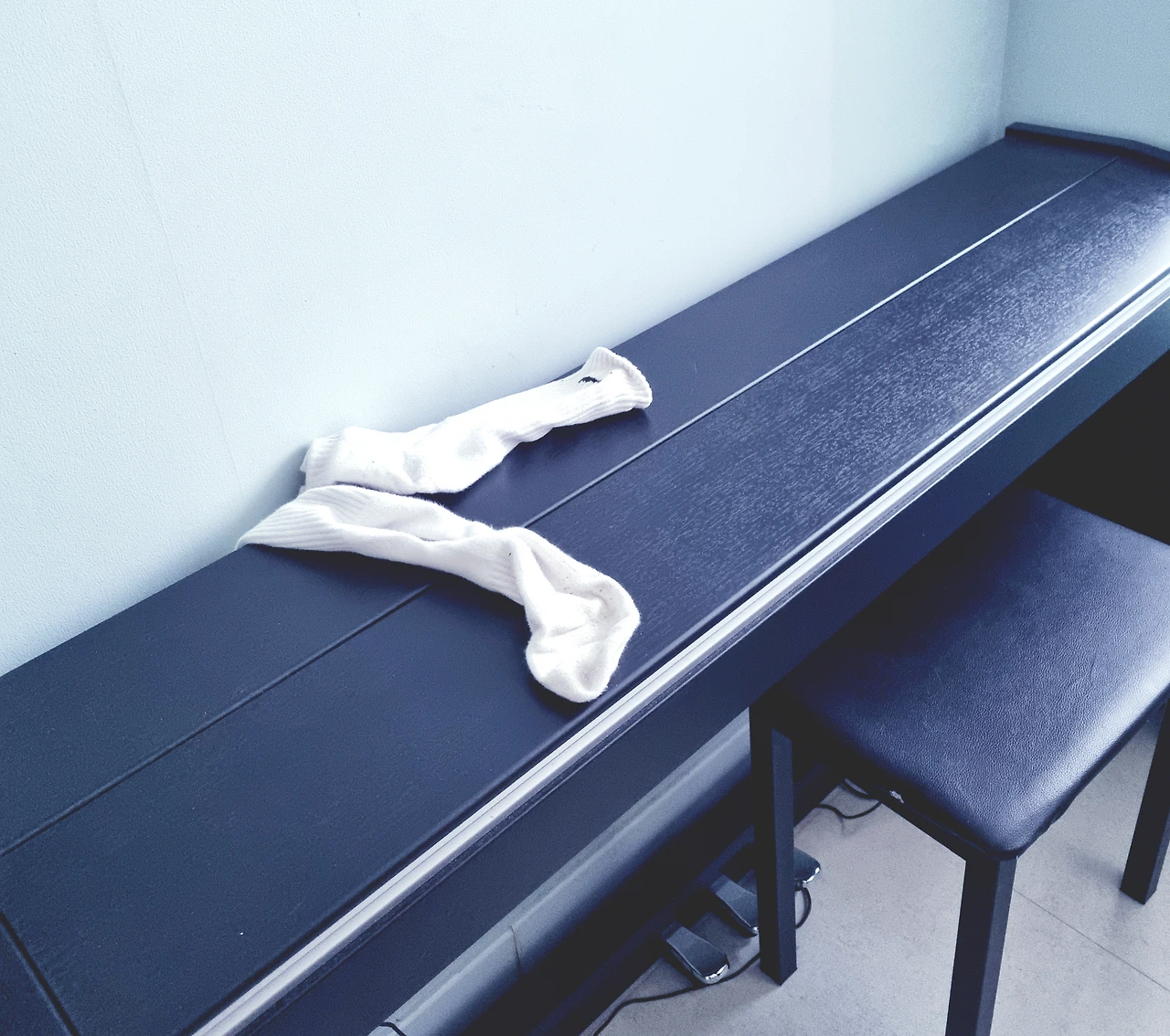 신고 벗은 양말이 세탁 바구니와 친한지 피아노 덮개와 친한지도 모르는구나...