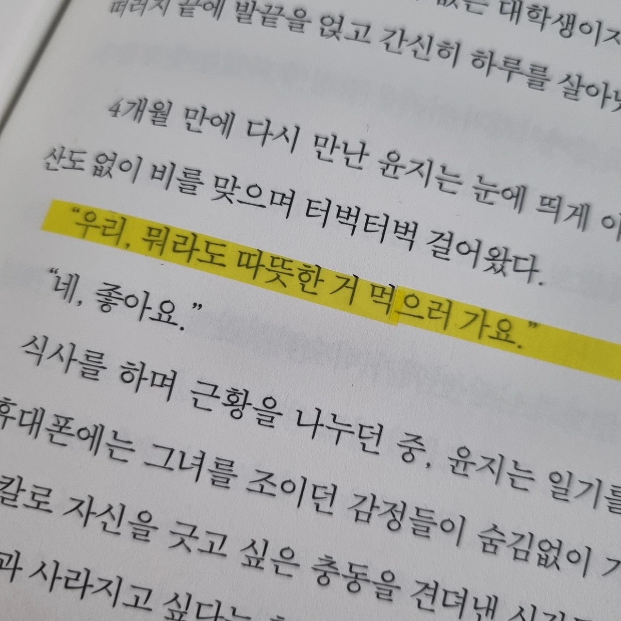 은은한 조명아래 모여든 사람들과 아늑한 책방에서 도대체 무얼 본 거지? 내게 무슨 일이 일어났기에 팔다리에 힘이 다 빠진 거지? 책과 작가, 독자, 책 속 인물들이 한데 엉겨 뒹굴었다. 아픔과 슬픔, 불안과 우울, 절망과 안도 등 온갖 감정이 내 안을 헤집고 다니며 힘을 쏘옥 빼놓더니 잠이 들고서야 겨우 차분해졌다.