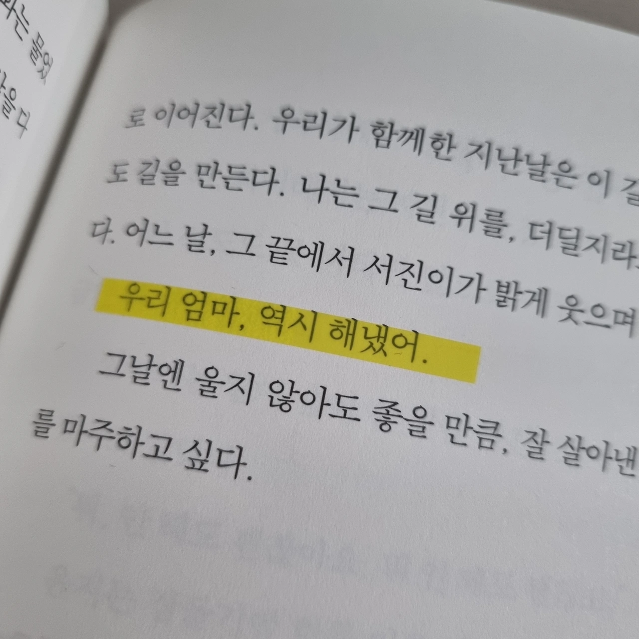 작가님께 2번 물어서 확인한 결과이다. 힘들거나 위태로운 청소년이나 청년들, 아이를 떠나보내고 삶이 막막한 부모와 가족, 사고사로 힘든 분들, 그들의 지인 등은 꼭 이 책에 닿기를 바란다. 송지영 작가님과 닿으면 더 좋다. 자주 연락해도 괜찮단다. 오히려 더 좋다고 한다. 괜히 바쁘실까 봐 괜히 미안해서 괜히 용기가 안 나서 망설이는 일은 없기를 바란다.