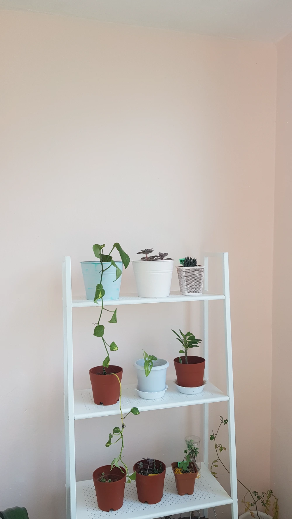 민트에 살짝 질린 나는 다른 색을 만들고 싶어졌다. 붉은색 물감을 조금 흰색 페인트에 타서 만든 연핑크색의 페인트로 앞 베란다와 신발장을 칠했다. 따사로움을 표현했다. 햇살이 따뜻하게 베란다로 들어오면 캠핑의자에 누워 핑크빛 세상으로 빠져들 욕심이었다. 집안의 죽어가는 화분들을 살려낼 연한 핑크색 베란다도 너무 마음에 들었다. 자뻑의 단계까지 왔다.