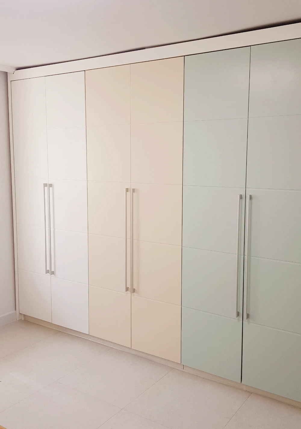 내가 창조해 낸 색으로 따뜻하면서 화사한 느낌의 컬러로 15년 역사의 MDF 붙박이장을 멋들어지게 재탄생시켰다. 총 8짝의 문짝은 순백의 화이트 2짝, 연한 베이지 2짝, 연한 민트 2짝, 다시 순백의 화이트 2짝으로 리듬감과 변화를 주면서도 통일성 있는 명도와 채도를 유지했다. 페인트가 미끄러지는 질감조차 표현하고자 할 정도로 심혈을 기울여 완성한 작품을 사진으로 담았다. 친구와 가족들에게 자랑했다. 인정욕이 많은 나였나 보다. 모두들 '이익!!' 하면서 놀라고 부러워하니 또 자신감이 하늘 끝까지 승천하였다.