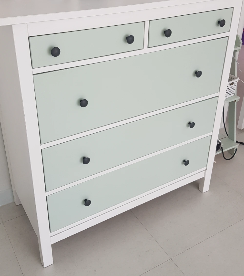 여기서 멈출 순 없었다. 피로가 누적되어 쓰러져도 또 뭔가 제 시간 내에 해내야 직성이 풀리는 사람이었다. 던 에드워드 브랜드의 고급 화이트 페인트와 남은 민트색 페인트로 오래되어서 다리가 휘청거리는 이케아 서랍장을 아름답게 재탄생시켰다. 가성비만을 따지자면 새로 서랍장을 사는 게 나았지 싶을 정도로 돈과 에너지를 투자했다. 평생 못 버릴 것 같은 느낌이 들었다.