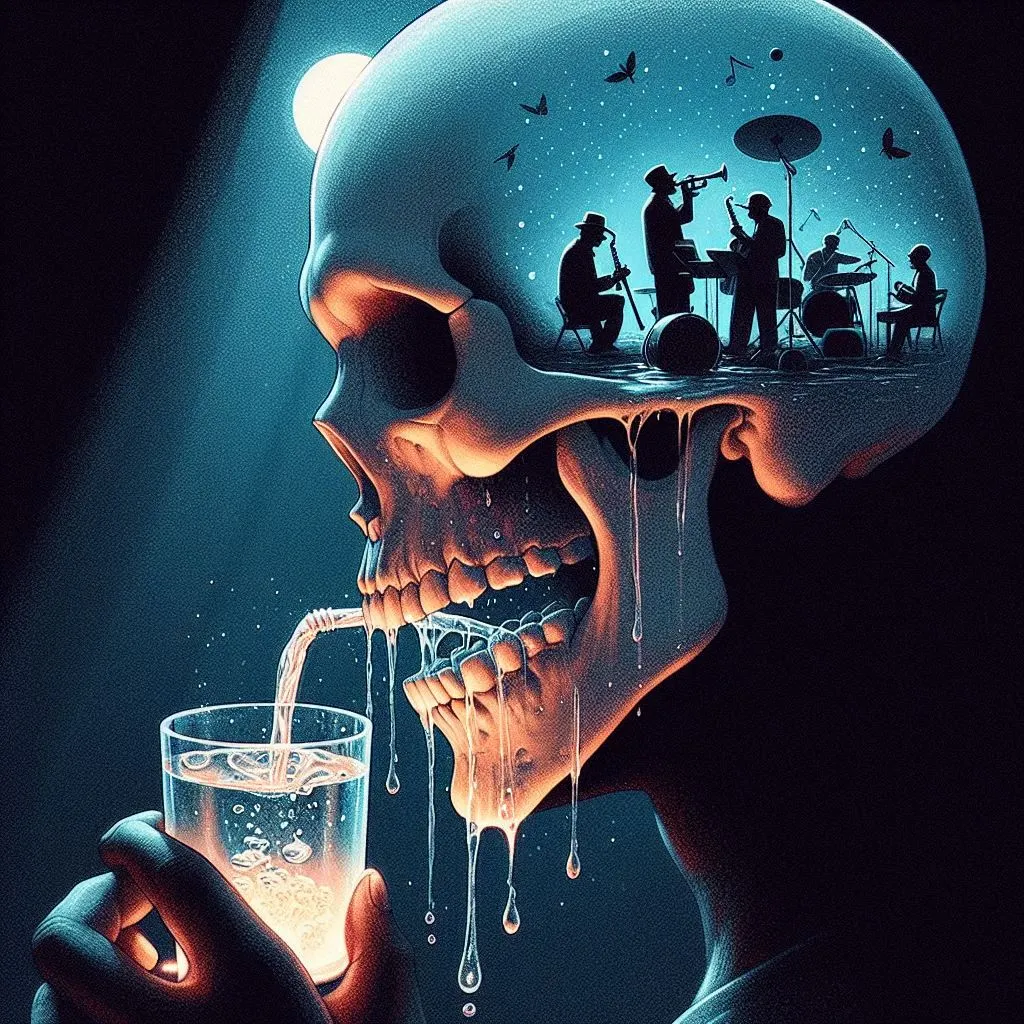 해골 속 물방울 하나가 떨어진다. 댄스 음악의 리듬처럼 부드럽게.
