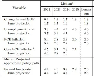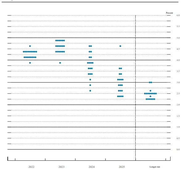 금리 전망 : 올해 말 4.4%, 2023년 말 4.6%, 2024년 말 3.9%, 2025년 말 2.9%