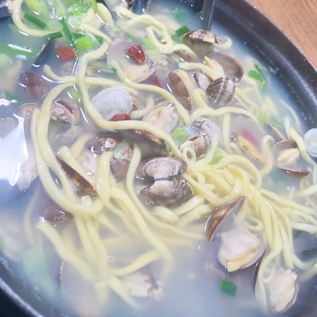 바지락 칼국수와 부추전. w/대마막걸리