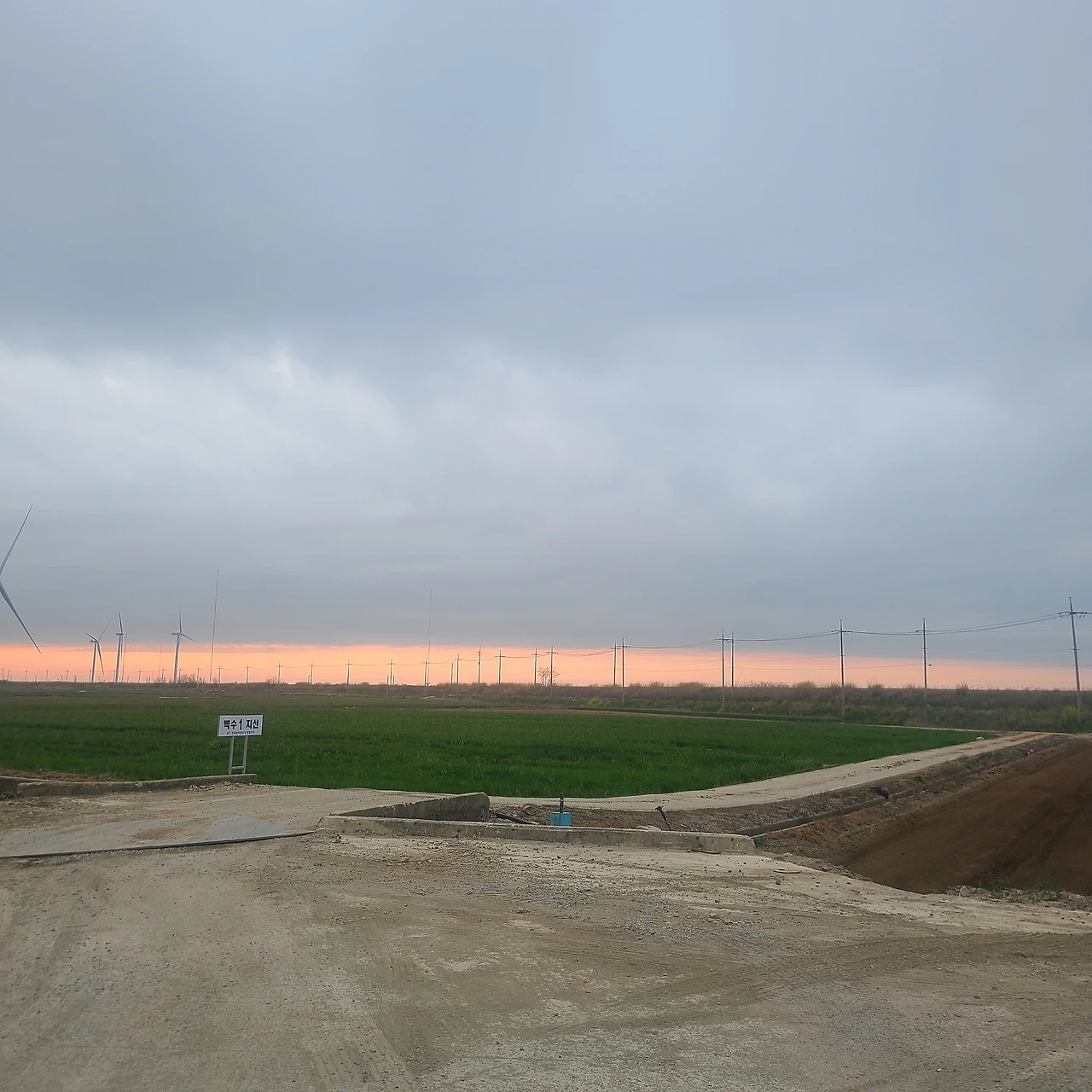 노을이 너무 이뻐서 급 내려 한 컷.