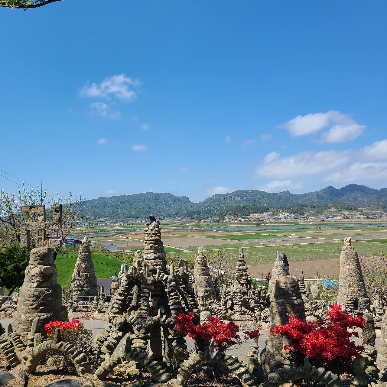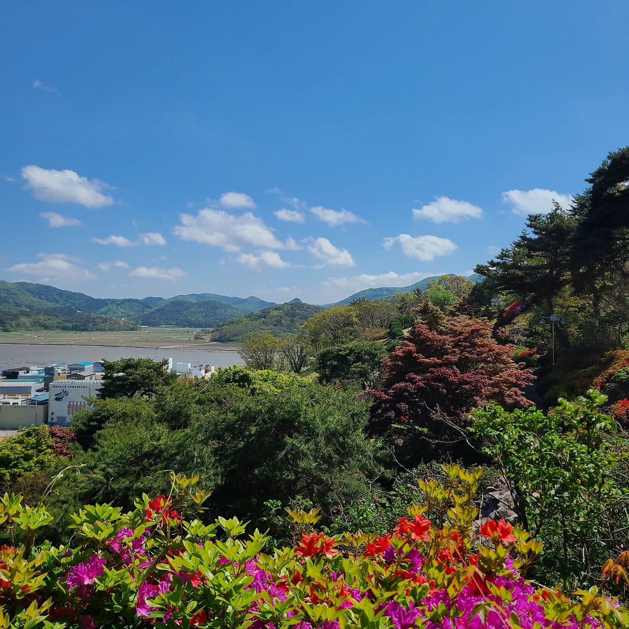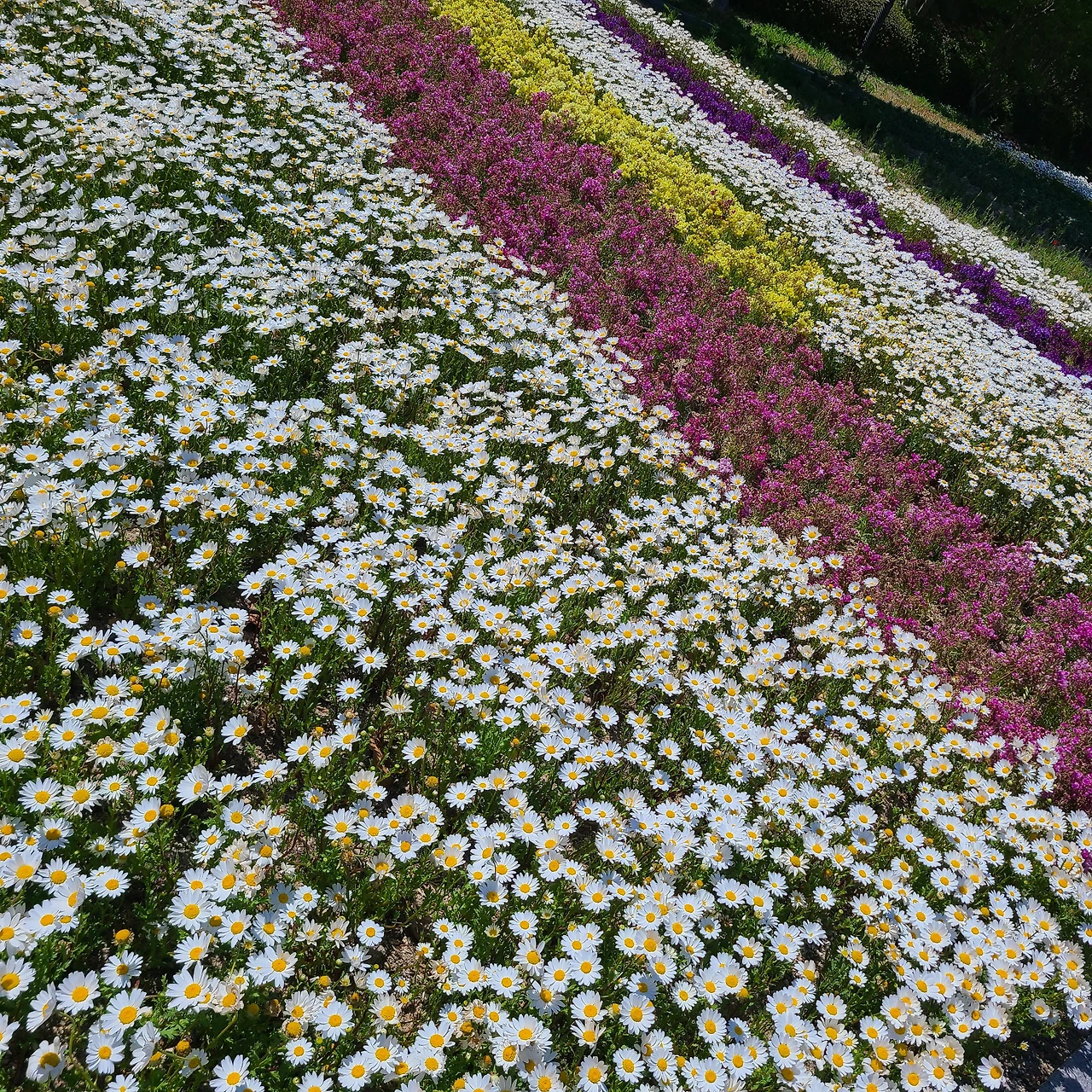 화단을 알록달록 잘 꾸며 무지개떡 같음
