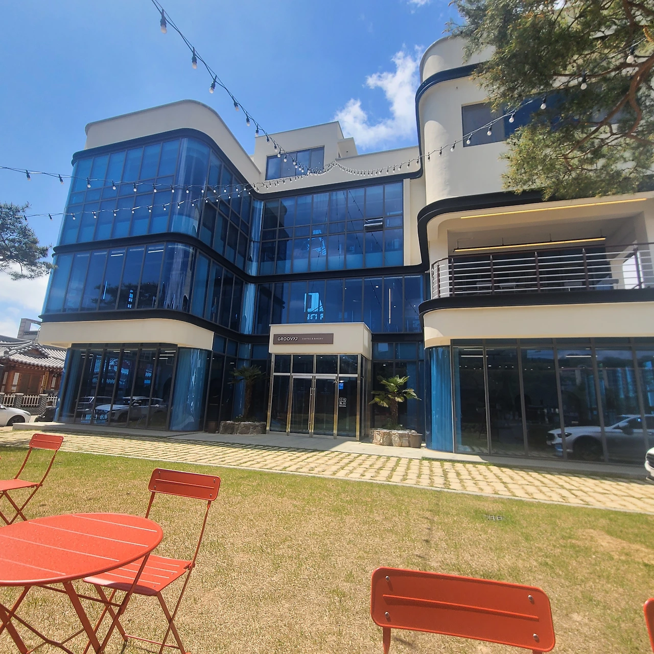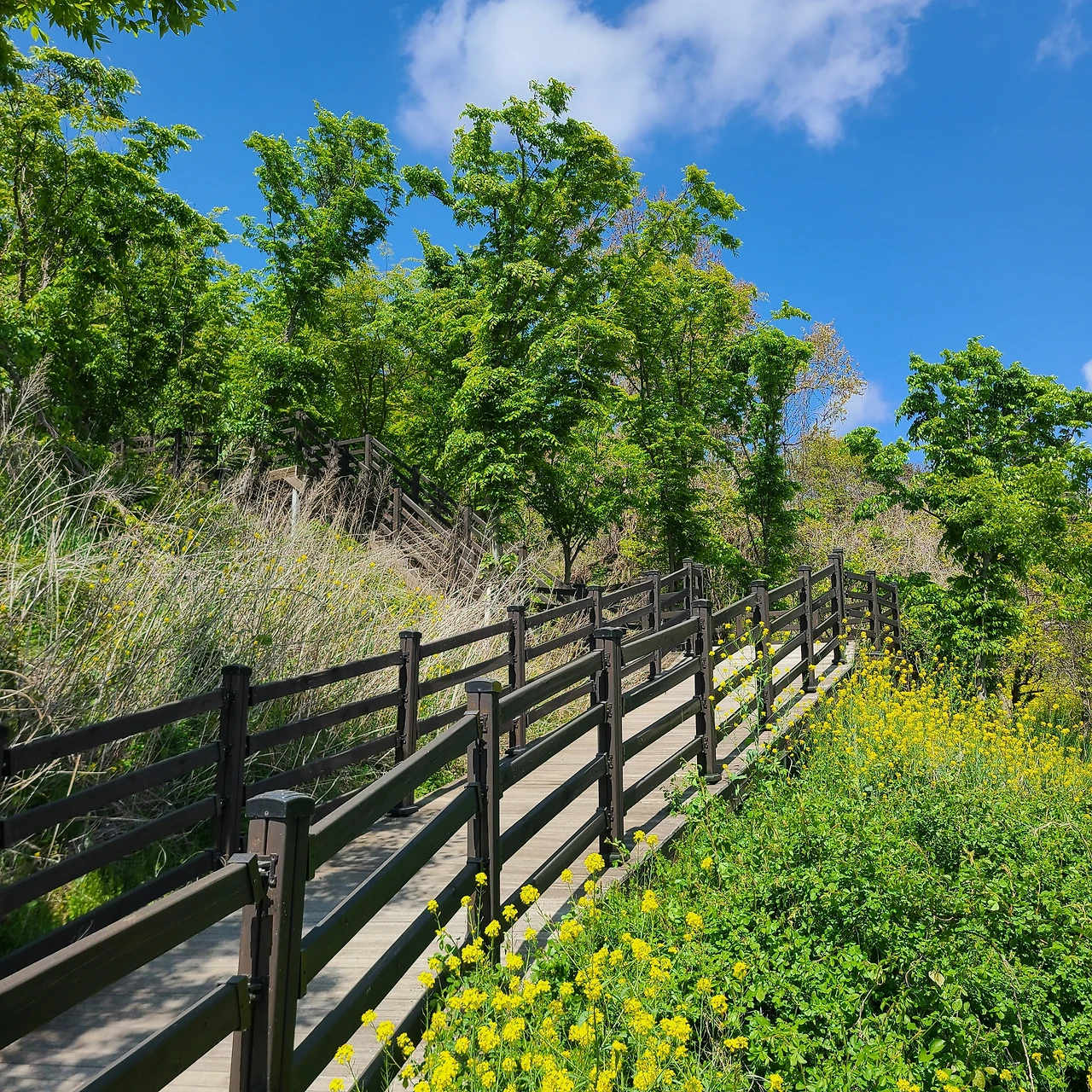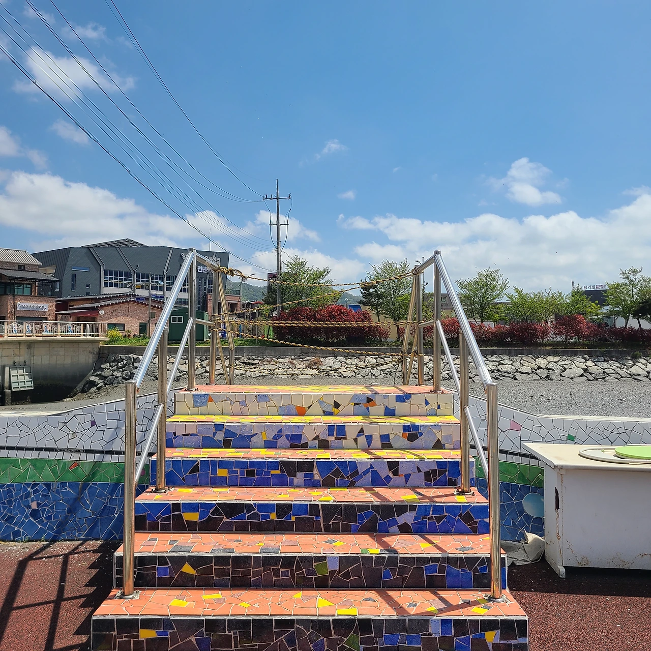 화단을 알록달록 잘 꾸며 무지개떡 같음