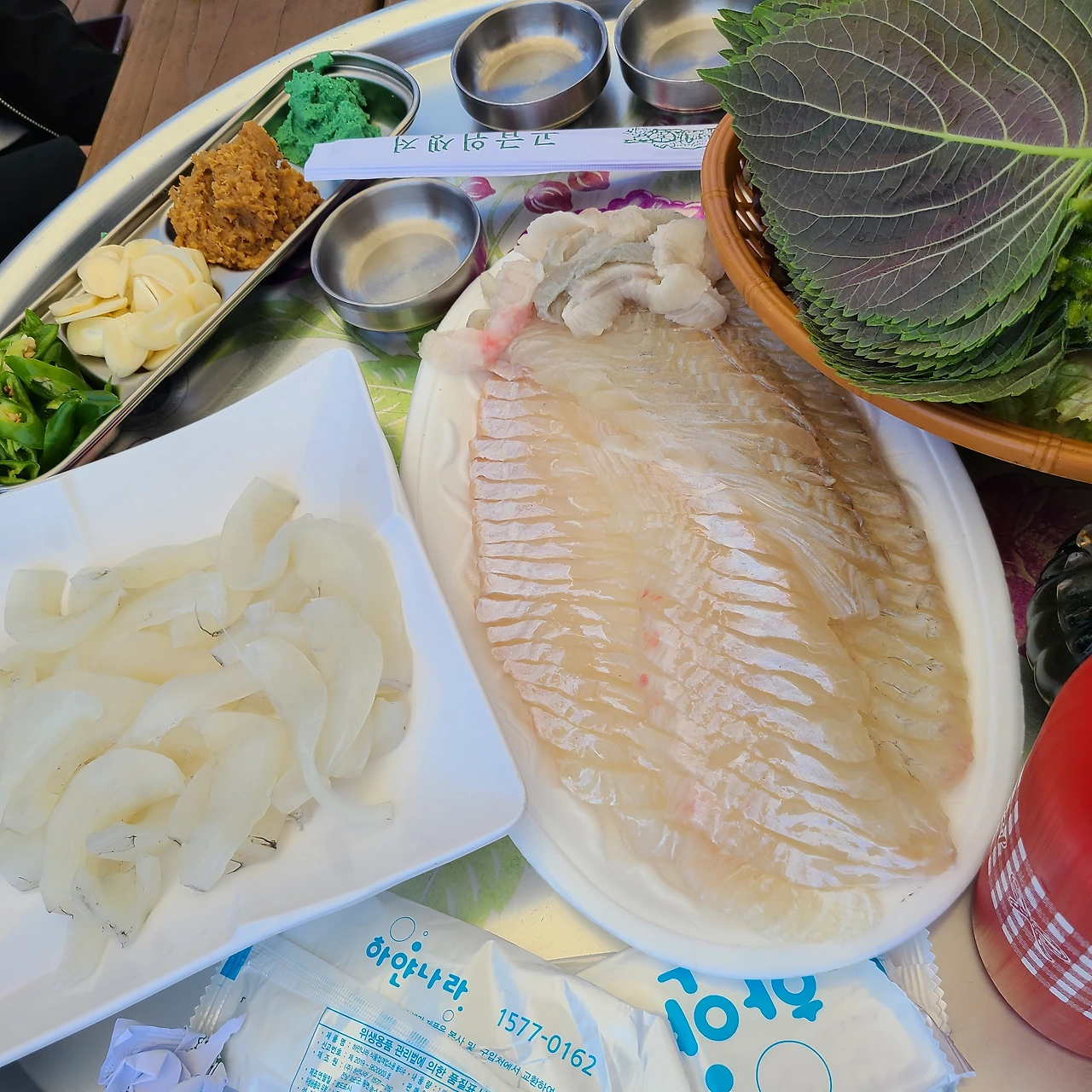 그 자리에서 떠서 먹는 광어와 갑오징어