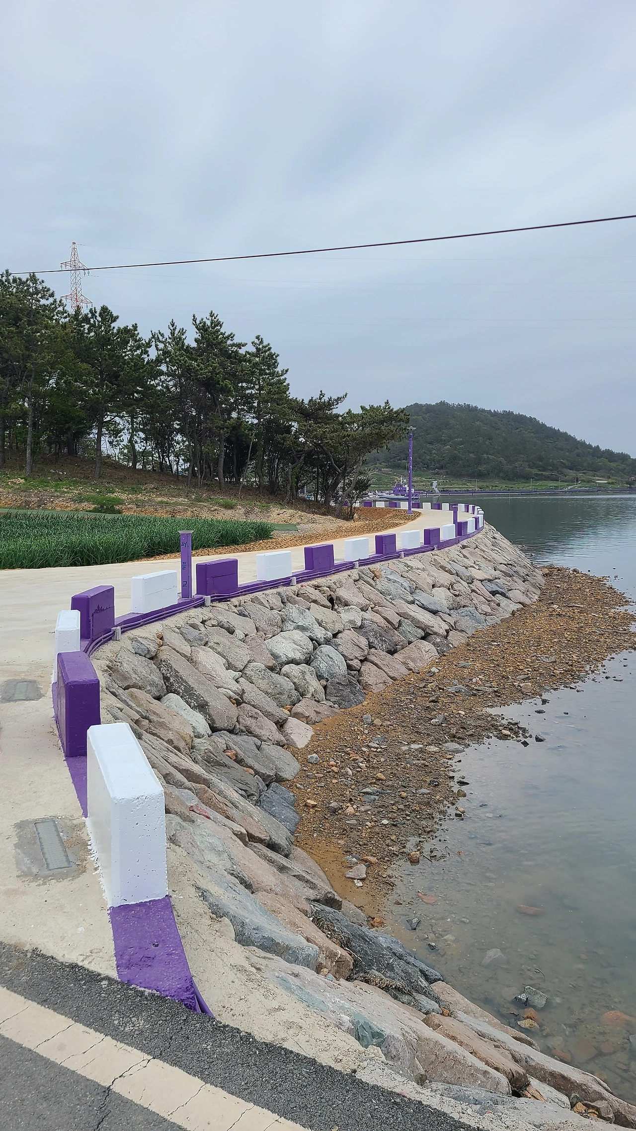 보라섬은 벽 가드레일 지붕 등의 모든 영역을 보라로 칠했다. 산토리니가 생각났다.