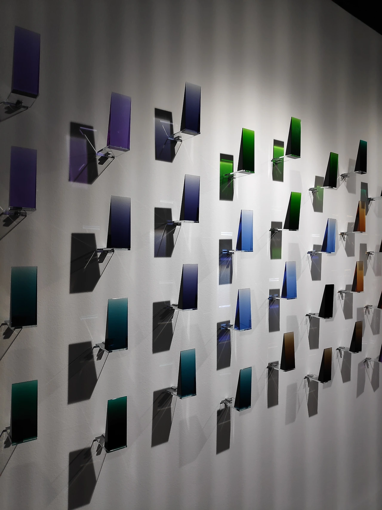 겨울 숲 / 신봉철벽을 장식하고 있는 겨울 숲은 눈이 소복이 쌓인 겨울날, 작가가 아이들과 숲을 걸으며 장난을 치다가 눈 아래에서 자라고 있던 푸른 이끼와 새싹을 보며 느낀 자연을 향한 경외를 표현했습니다. 이 작품은 여러 색깔로 변화하는 자연 속 빛을 통해 생명에 대해 이야기합니다. 관람자는 빛을 통해 추위 속에서도 때가 되면 피어나는 생명과 숲을 걸으며 보게 되는 시시각각 변화하는 자연의 섭리를 느낄 수 있습니다. 하나씩 느리게 순차적으로 점멸하며 작품을 비추는 조명은 태양의 움직임을 모방하고 있습니다.