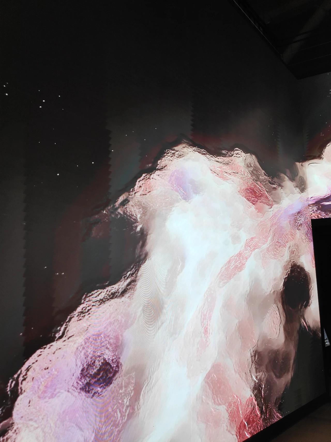 무한 Infinitum / 정화용<무한>은 눈에 보이지만 만지거나 잡을 수 없는 빛을 디지털 가상 이미지 시뮬레이션을 통해 표현합니다. 빛을 그린 이미지들은 때로는 바다의 거친 파도로, 때로는 유화 물감의 번짐으로, 때로는 밤하늘 먼 우주 너머에서 오는 신호처럼 다양하게 변합니다. 그리고 우리는 이렇게 끊임없이 변화하는 빛의 움직임을 통해 만물의 근원인 빛의 에너지와 무한한 공간감을 느낄 수 있습니다. <무한>은 관람자를 미지의 빛의 공간으로 불러들이며 사유정원 속으로 안내합니다.