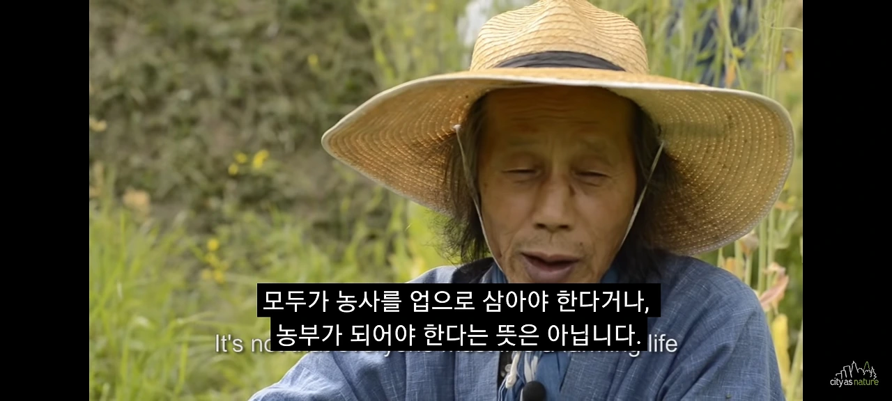 실제 자연농부로 지내고 있는 한국 일본 미국 사람을 인터뷰. 자연에 해를 주지 않는 방식으로 비료도 주지 않고 자연과 더불어 필요한 만큼만 길러 건강한 밥상을 차린다고함.