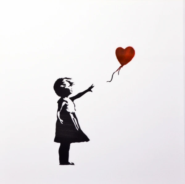 그는 특히 2018년 ‘풍선과 소녀’(Girl with the Balloon) 파격 퍼포먼스로 유명해졌다. 영국 런던 소더비 경매에서 100만 유로 이상으로 그림이 낙찰된 순간, 뱅크시는 미리 프레임 밑에 장치해둔 분쇄기를 원격으로 가동해 그림을 즉석에서 분쇄했다. 돈으로 구매하는 자본 미술 시장을 비판한 퍼포먼스였다.