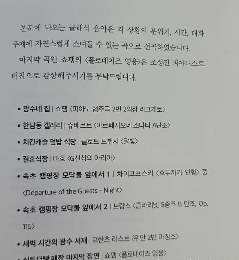클래식 음악이 많이 나온다... 작가님이 하루키 영향을 많이 받았나 싶음.