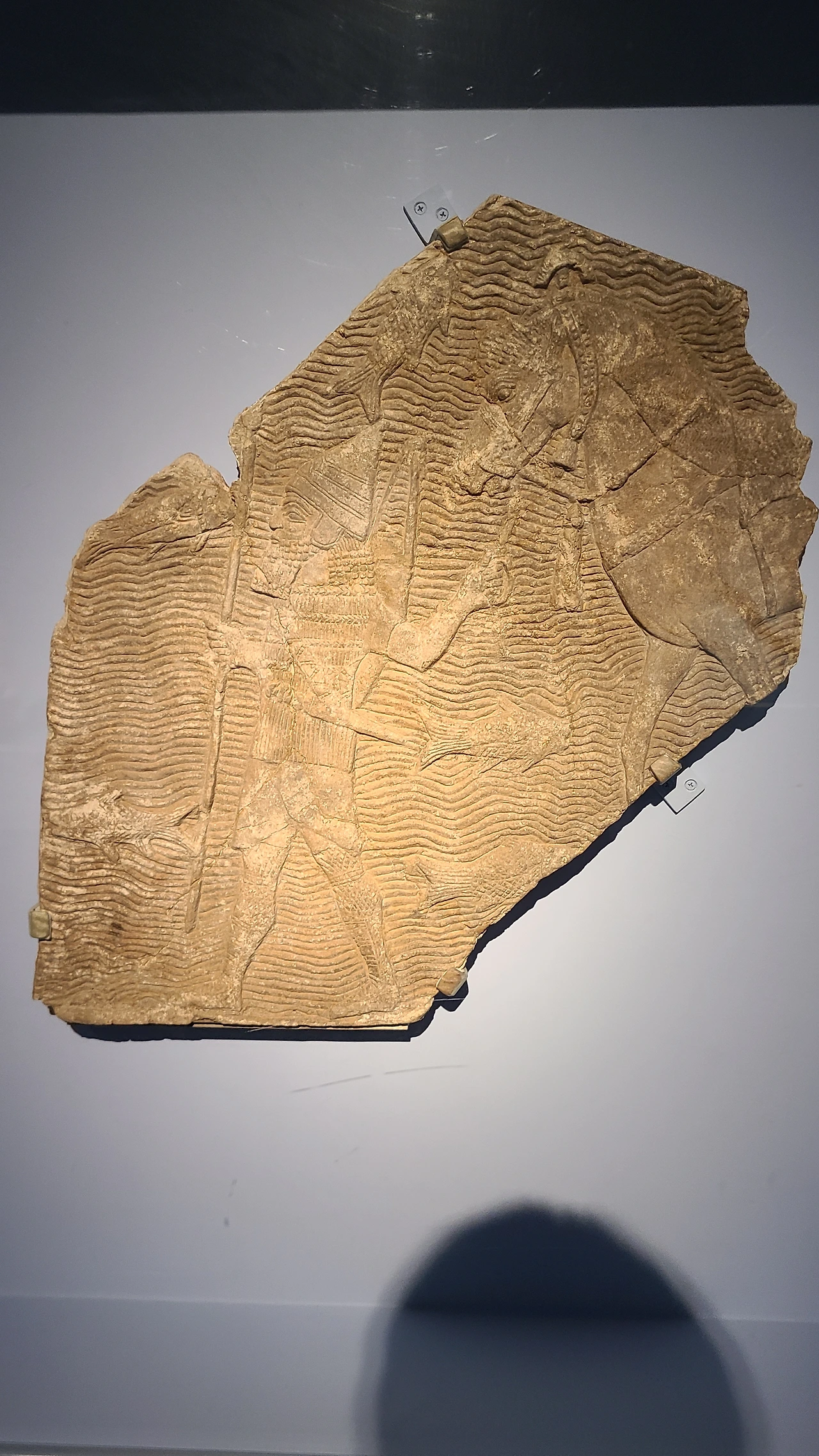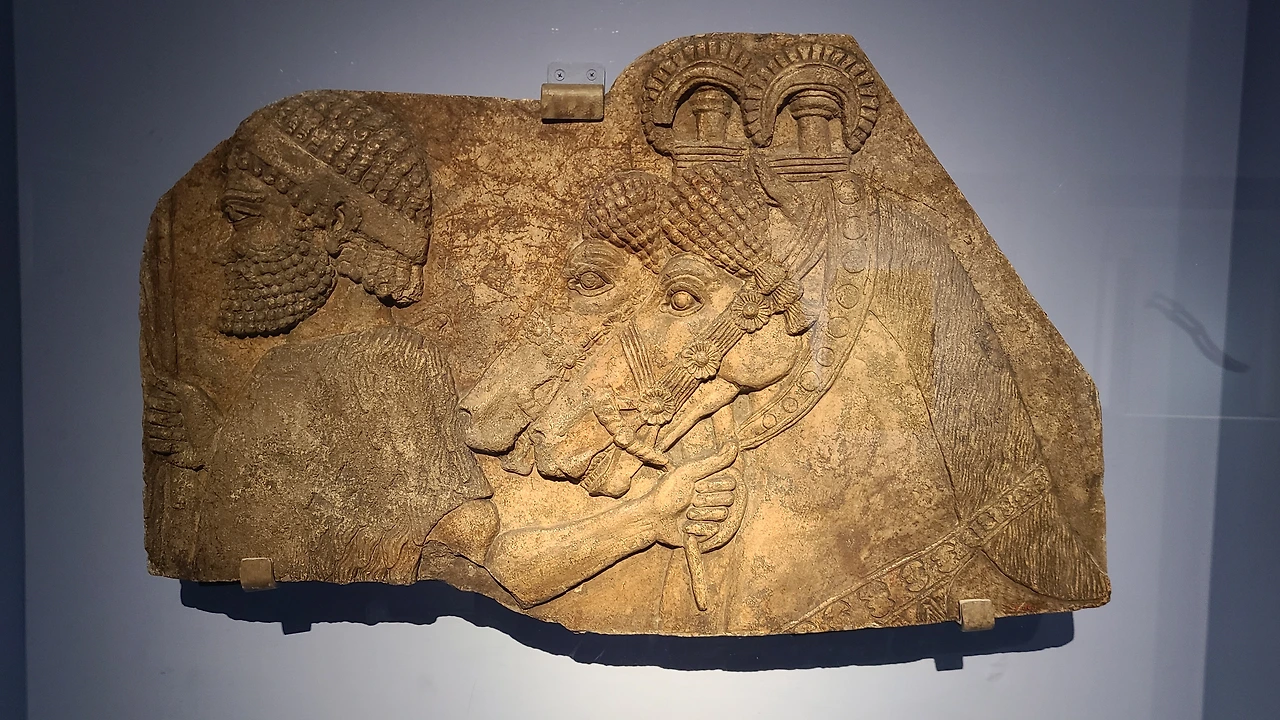 신-앗슈르 제국은 궁전 내부를 장식한 아름다운 석판 부조로 이름이 높았다. <조공 행렬에 선 외국인 마부>는 당시의 정세를 정교한 조각 기술로 담은 작품이며 <강을 건너라고 지시하는 앗슈르 군인> 등 여러 부조에서 상이 현실을 대리하는 힘을 가진다는 앗슈르인들의 사고방식을 드러낸다.