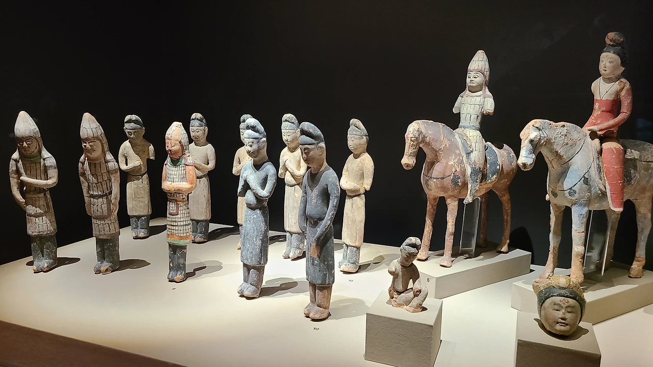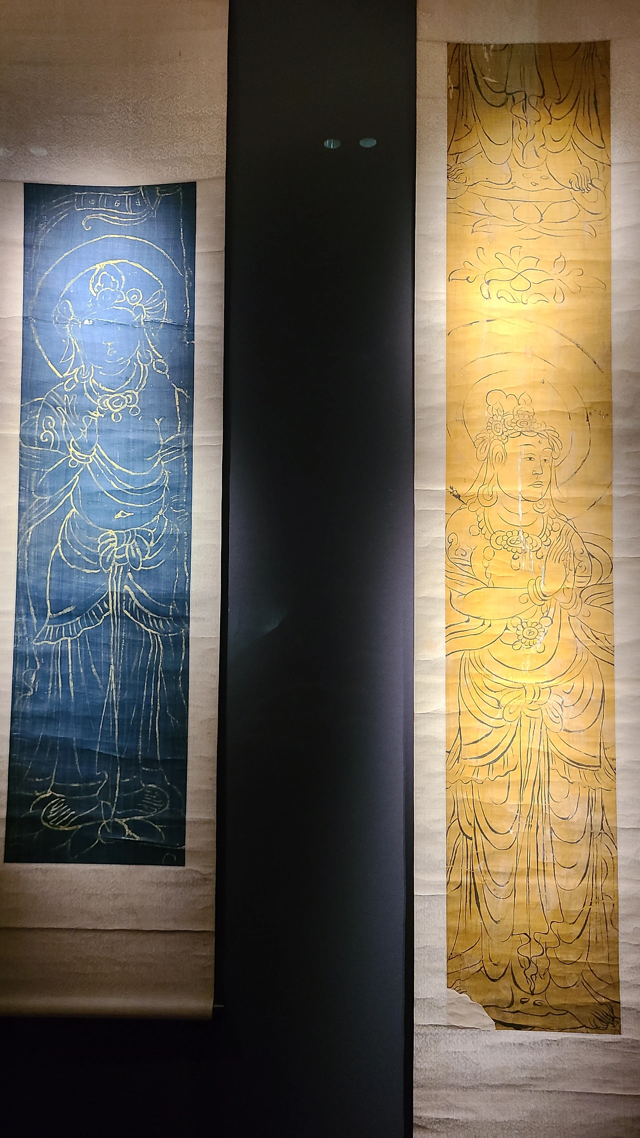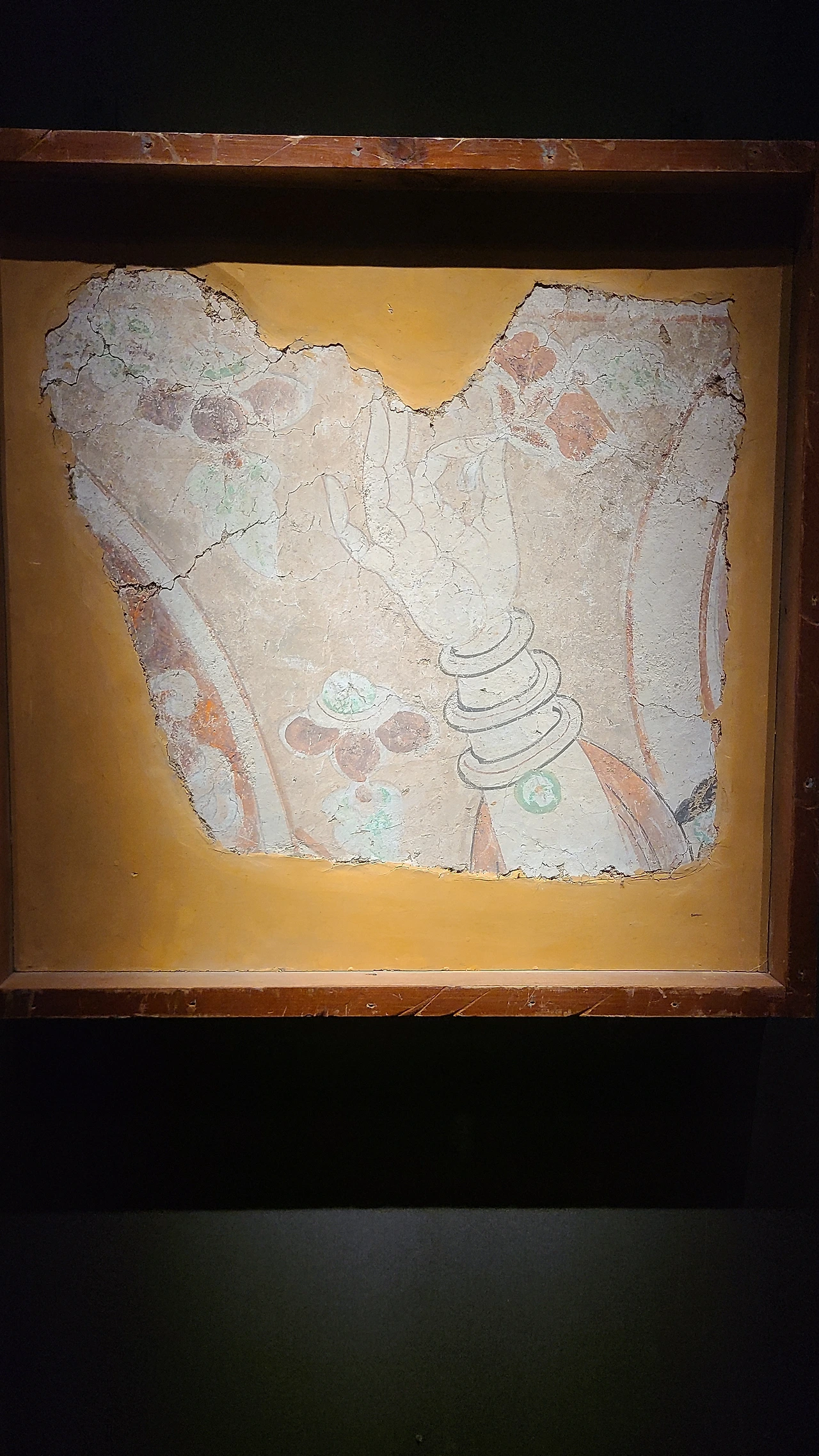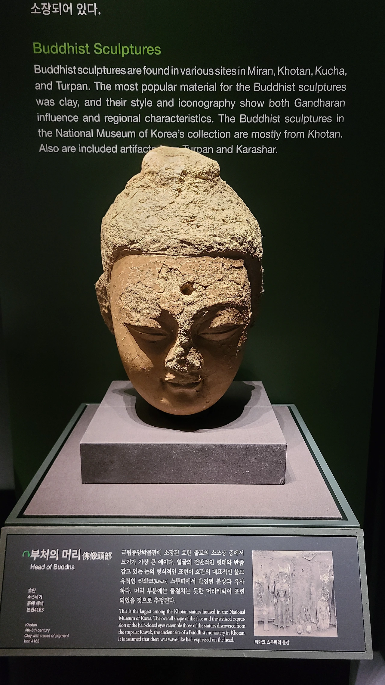 화려한 쟁반을 든 채 무릎을 꿇고 앉아 있는 두 사람의 개성 있는 얼굴과 복장에서 실크로드를 오가며 활약하던 상인의 모습이 연상됩니다.