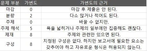 2. 세분화한 각 부분의 바꾸기 쉬운 정도(가변도)를 점수화한다(표로 만들기)