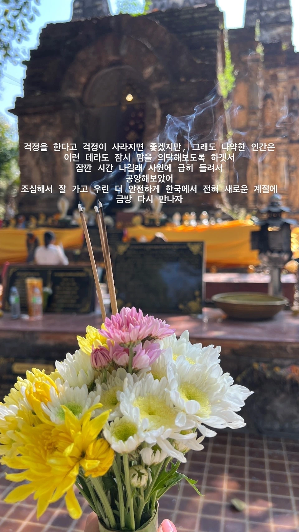 시간 많은 내가 제주도나 세계 어딘가에서 한 달씩 지낼 때마다, 주말 내 짬을 내 여행 왔다는 사람들을 볼 때 와... 그들과 나는 정말로 다른 종족이라고 생각했다. (그리고 이건 여전히 그렇다.) 해외 어딘가에 별장이 있고, 돈이 넘쳐흐르고, 순간이동 능력이 있지 않는 이상 여행은 언제나 현실 자각 시간의 연속이다. 누군가가 곁에 있지 않는 이상 스스로 이 여정을 결정하기에 나는 너무 현실에 만족하고 귀찮음 많은 사람이었다.하지만 이번 치앙마이 두 달 살기는 어떤가. (언니는 '살기'와 '여행'의 차이가 뭔지 궁금해했고 나도 여전히 궁금하긴 하다) 후련하게 하루를 끝마치고 발 뻗고 자는 바람에 문득 일기장을 펴면 텅 빈 페이지를 몇 장 더 넘겨야 했다. 강박적인 영어단어 외우기나 일기 루틴을 건너뛰고도 만족할 만큼 알찬 하루하루를 살아냈기 때문에.