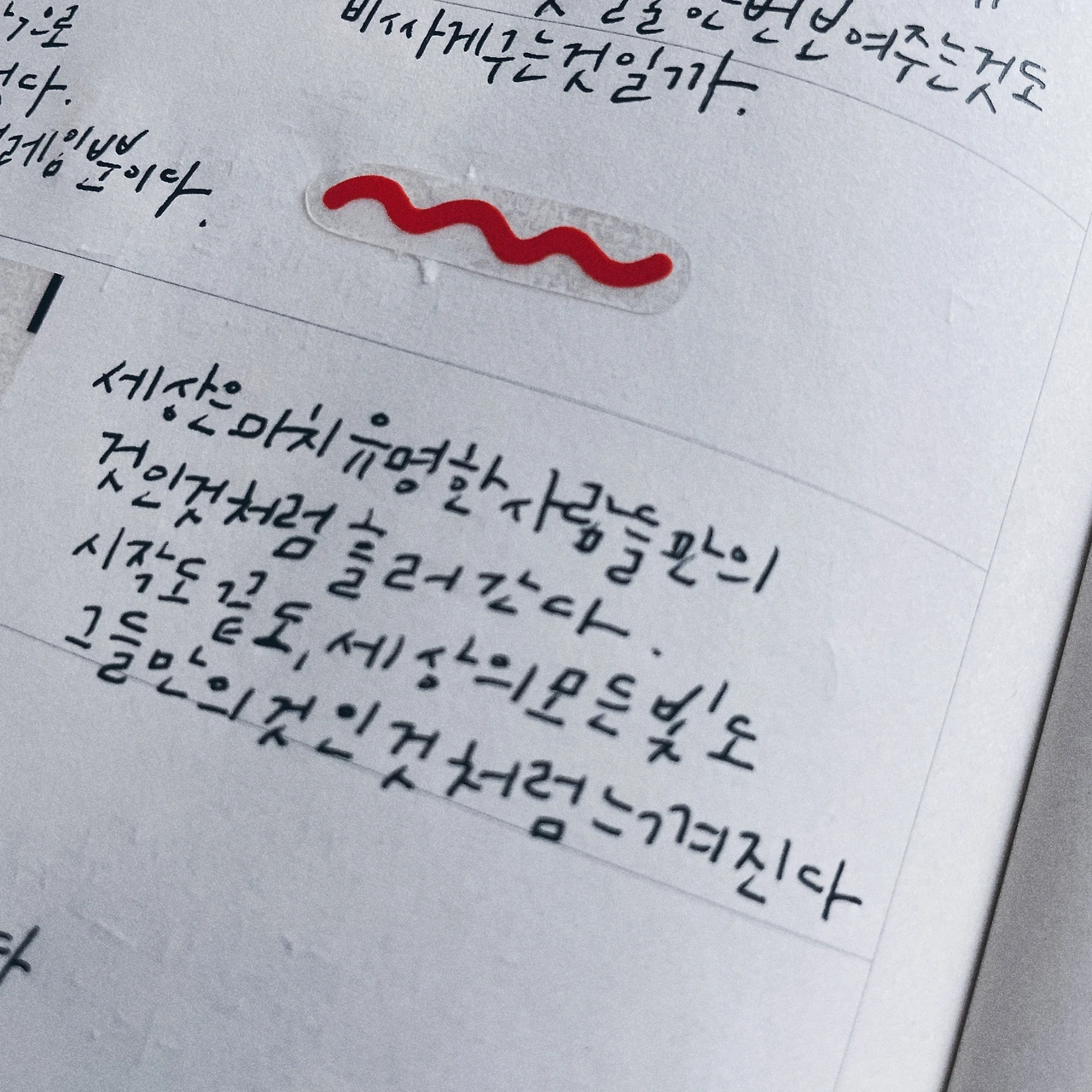 나는 오늘도 쓰기위해 다이어리를 펼쳤다. 거기에는 커뮤니티 운영규칙 제 1항. 사적인 친분은 인증하지 않는다. 라고 조용히 쓰여있다(아주 작은 글씨로). 장황한 이야기였기만 사람들 사이에 내가 없다는 사실에 자꾸만 작아지고 배가 아프다는 볼품없는 마음을 고백하는 것일지도 모르겠다.