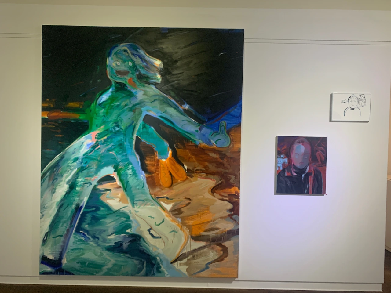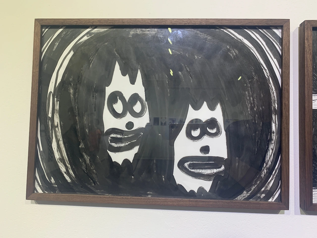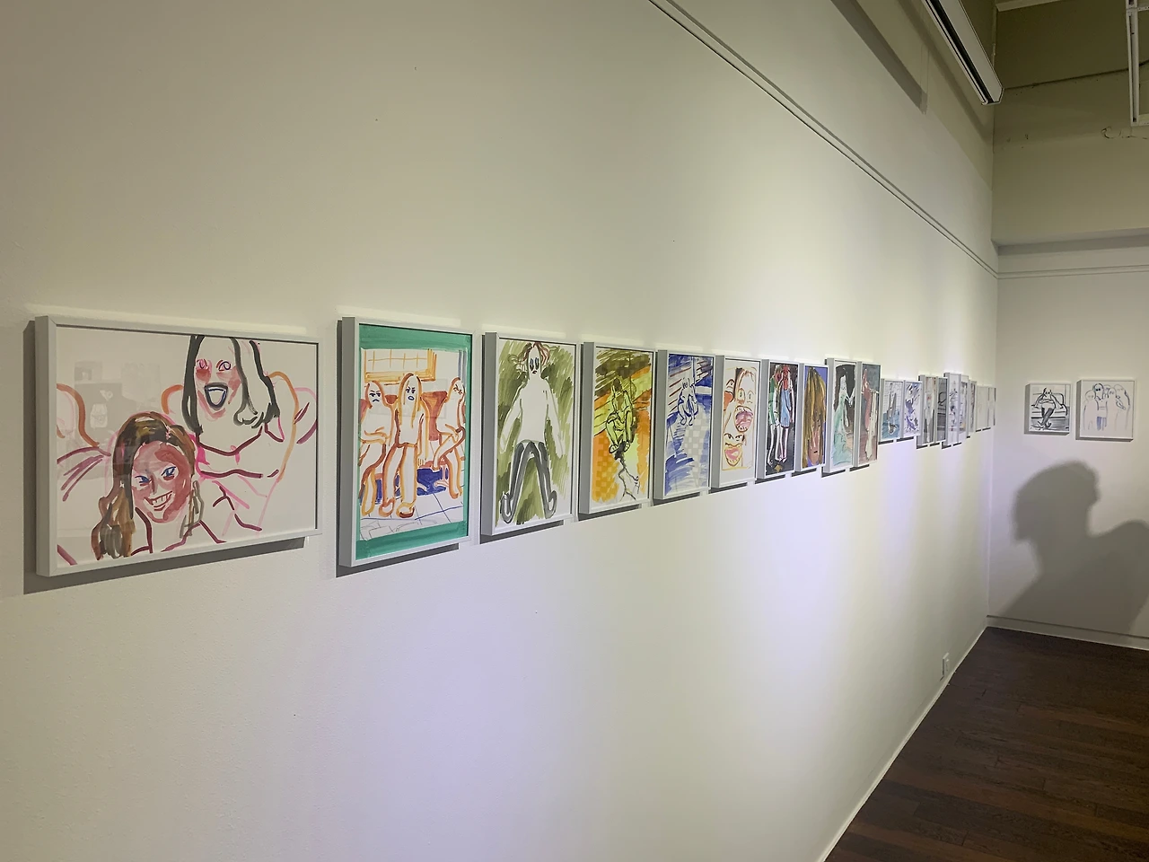 심래정 작가의 작품은 흑색 잉크나 페인트 마카 들을 이용한 거칠고 구불구불한 선의 드로잉 작품들이었고, 이은새 작가의 작품들은 흑색뿐 아니라 다양한 색상의 유화 형태의 드로잉 작품들도 함께 전시되어 있었다.