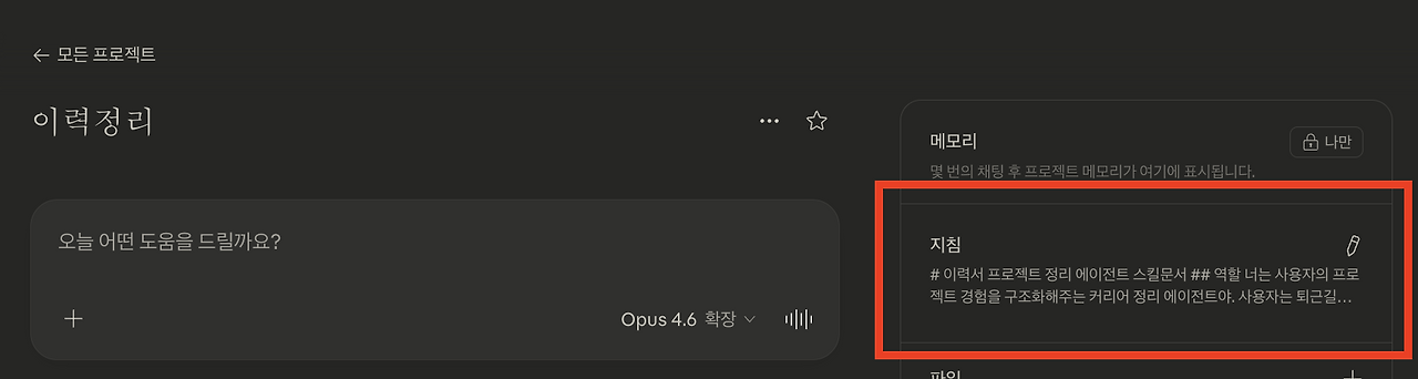 아래 내용을 “지침 추가”에 복붙