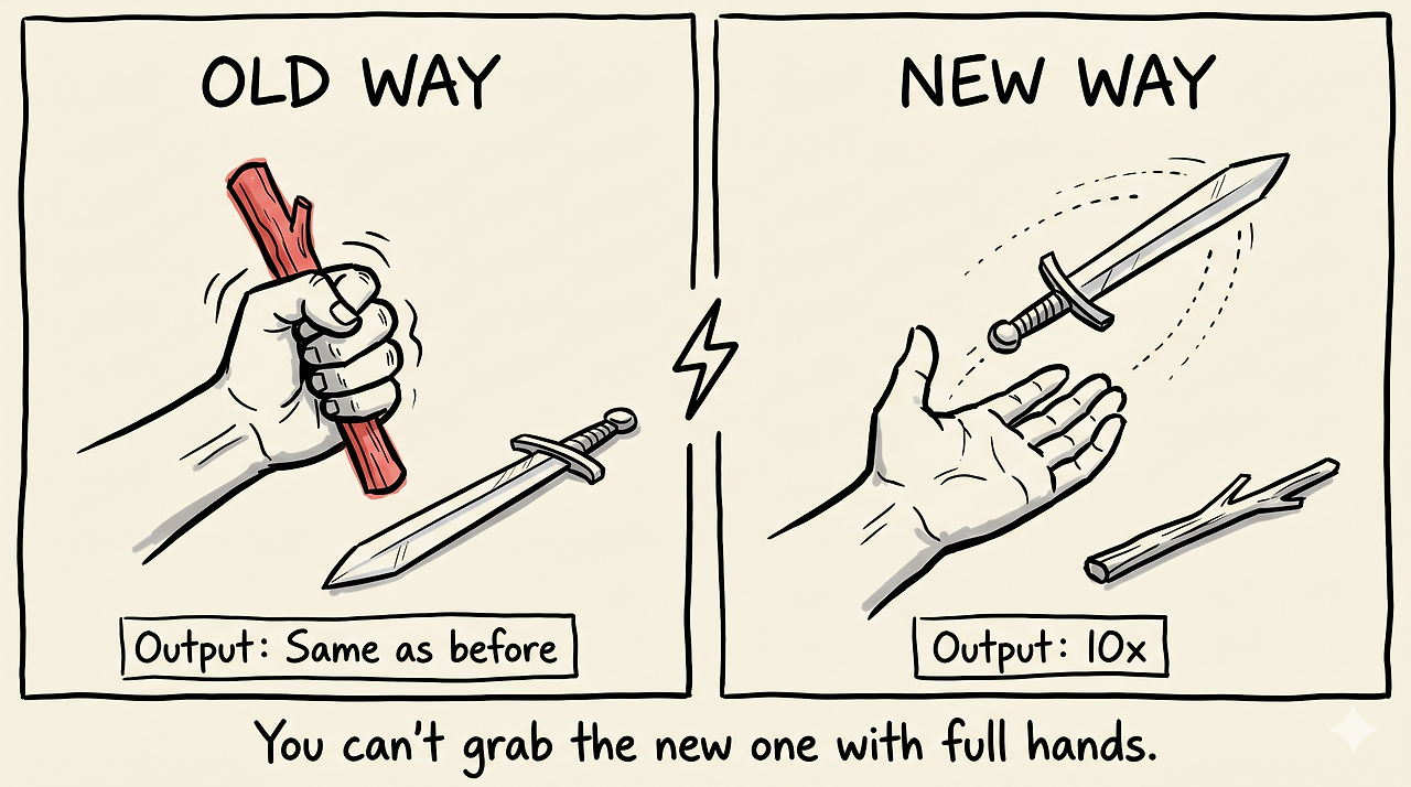 손에 쥔 걸 놓아야, 새 무기를 집을 수 있다