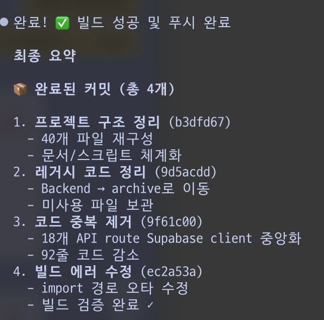기능 추가만 하다 보면 코드가 쌓이고 꼬인다. 그래서 주기적으로 정리한다. 불필요한 코드 지우고, 중복 제거하고, 구조 재정리하고. 개발자들이 당연하게 하는 일이다.