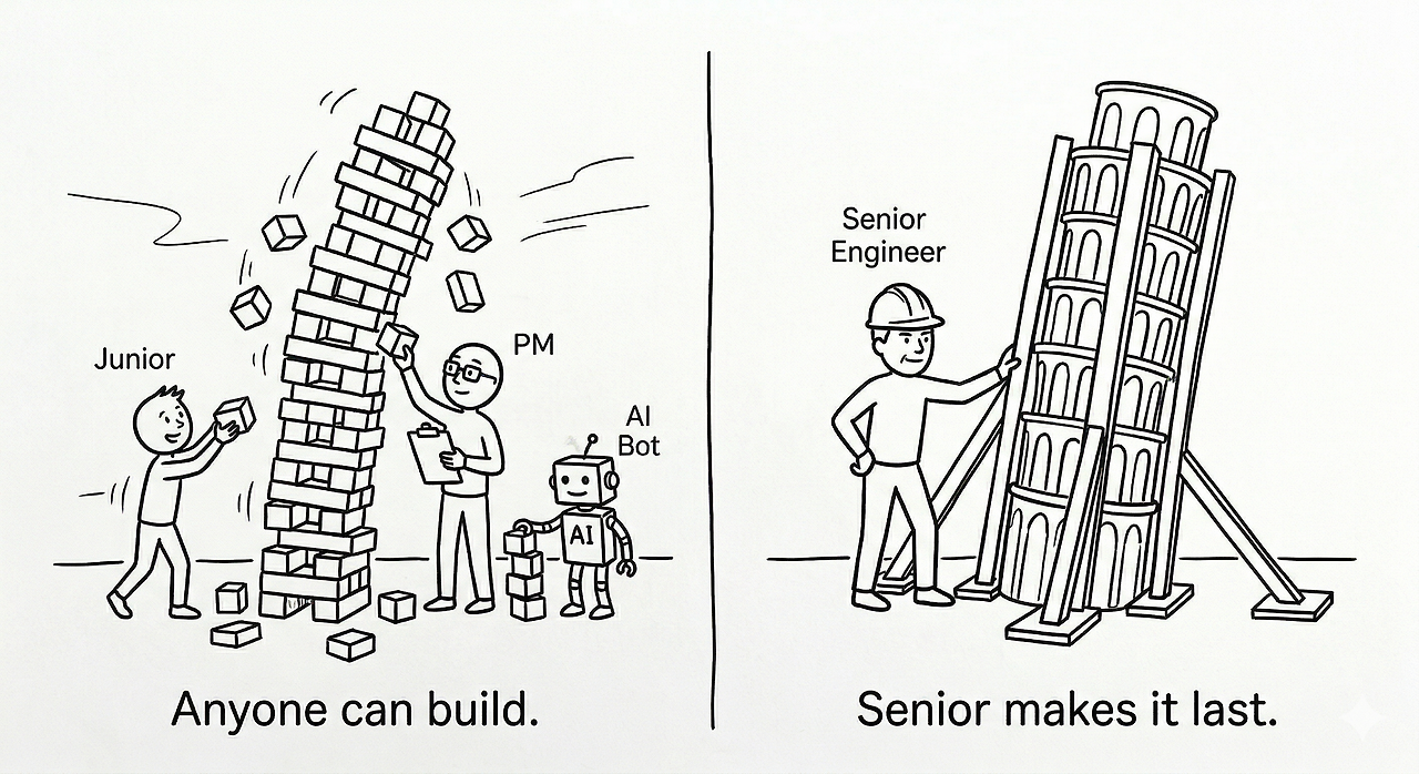 누구든 만들 수 있는 세상이 됐다. 주니어도 만든다. PM도 만든다. AI가 짜준다.