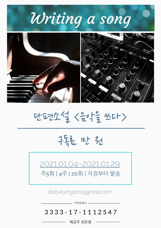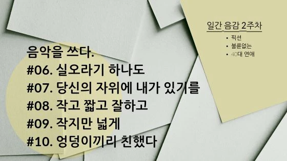 단편소설 <음악을 쓰다> 1주차가 끝났습니다.