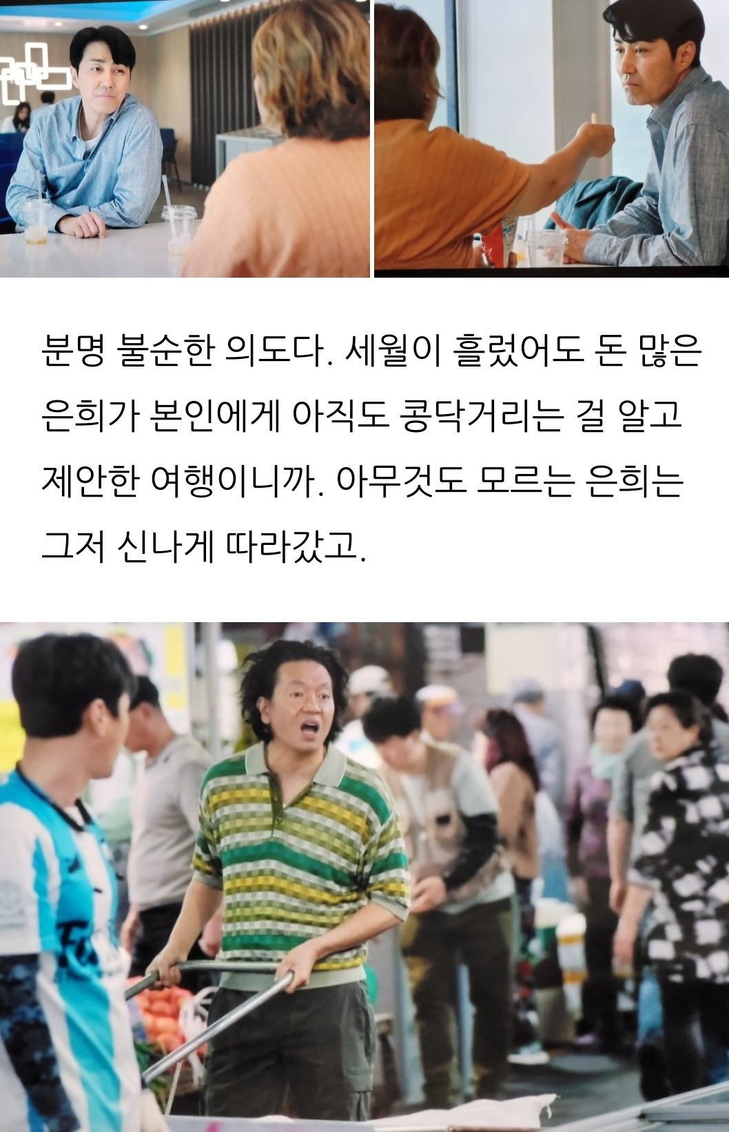 한수의 의도를 알아챈 시장 친구들은 안달이 났다.