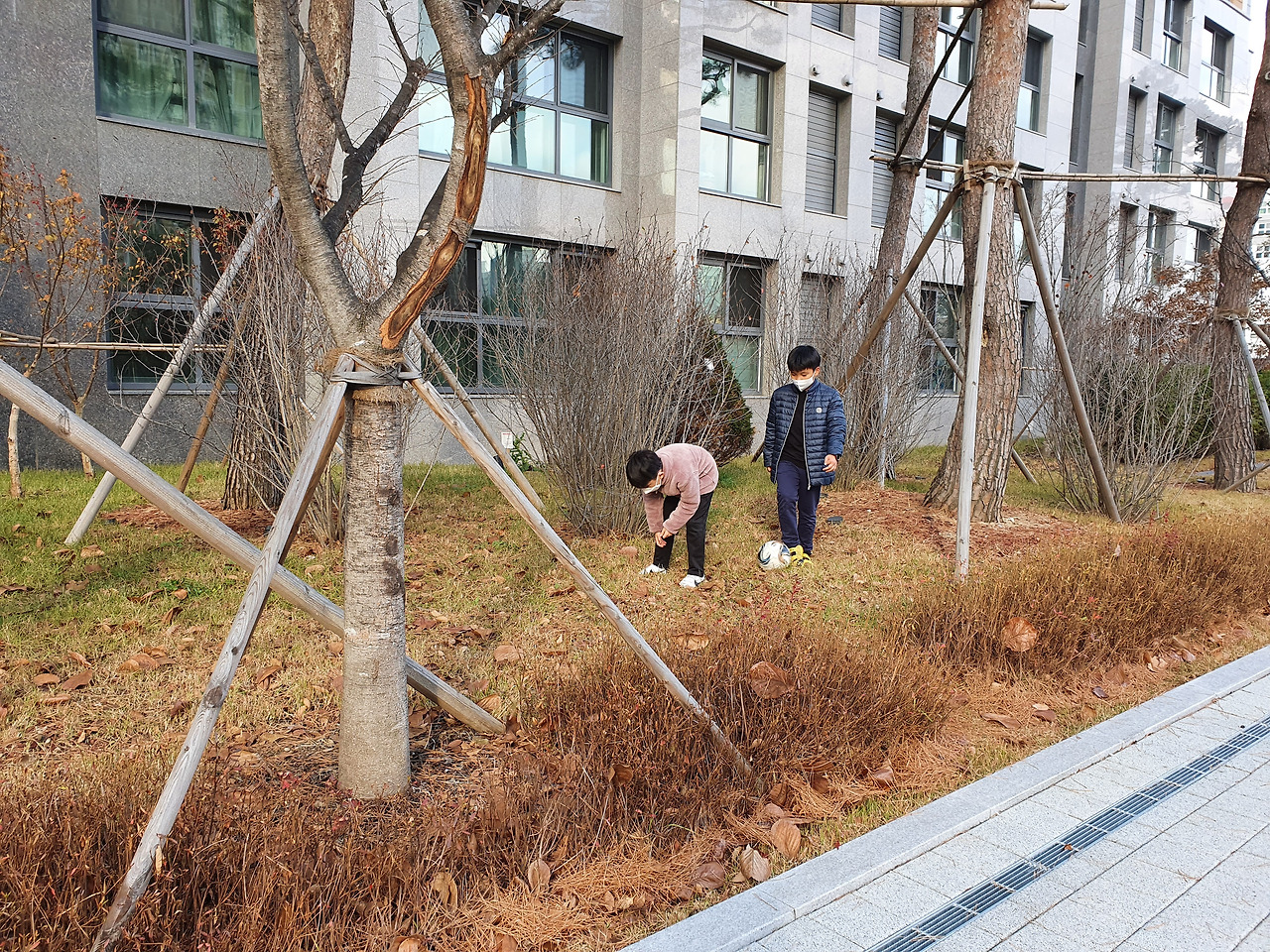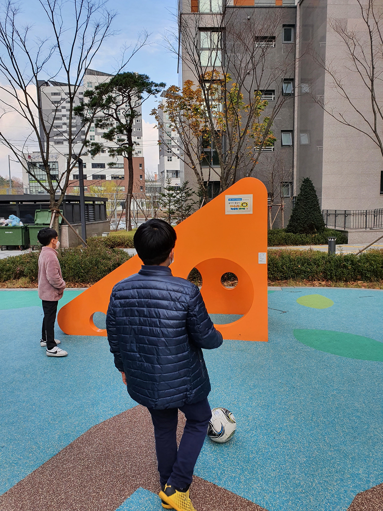 다행히 금방 깨닫고? 포기하고? 놀이터에서 축구를 시작한다.