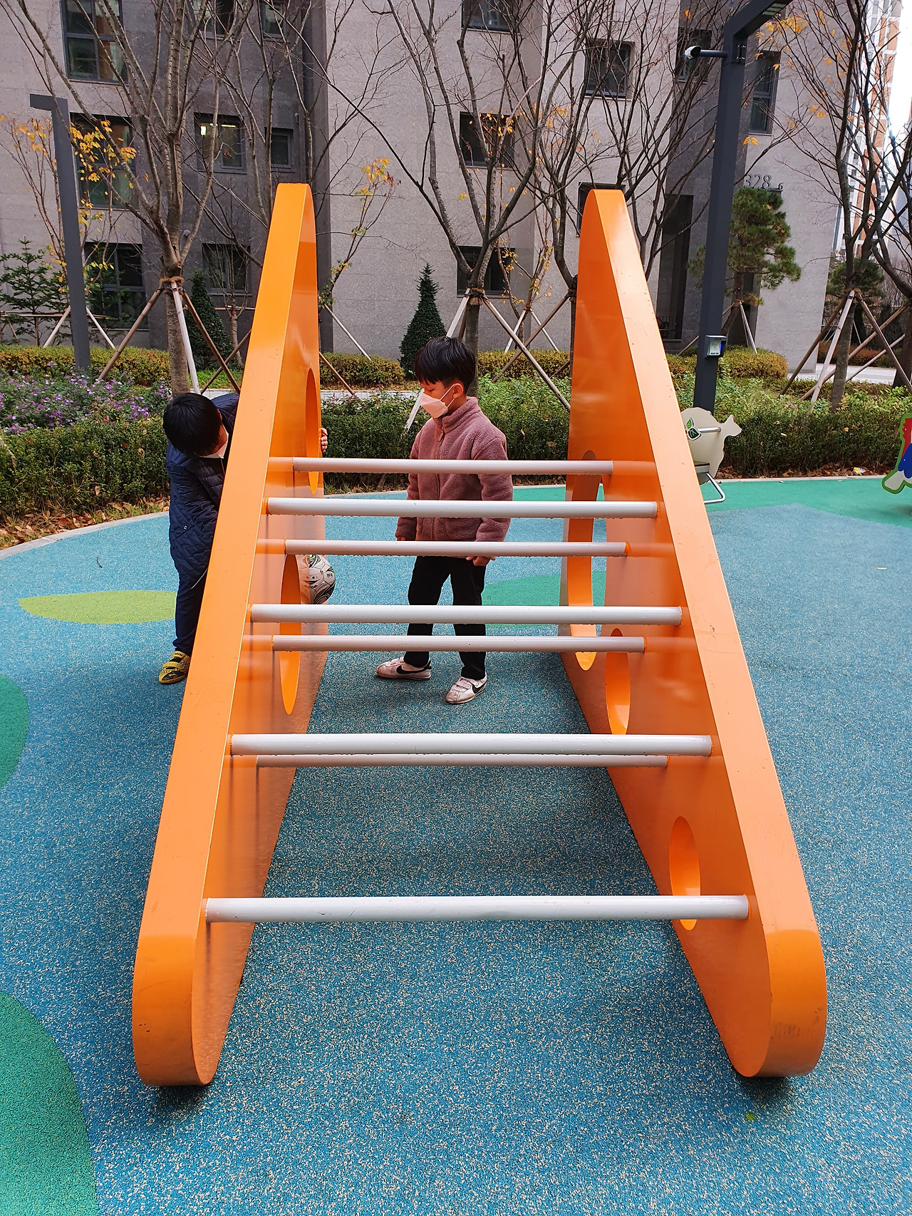 공을 한 번 차서 구멍을 두 번 통과하는 게 당연히 안 되겠지. 저 애는 그래도 해보겠다고 저리 노력하는데 내 새끼는 그네에 저런 포즈로 매달린 거 보니 그것도 꼴 보기 싫다.