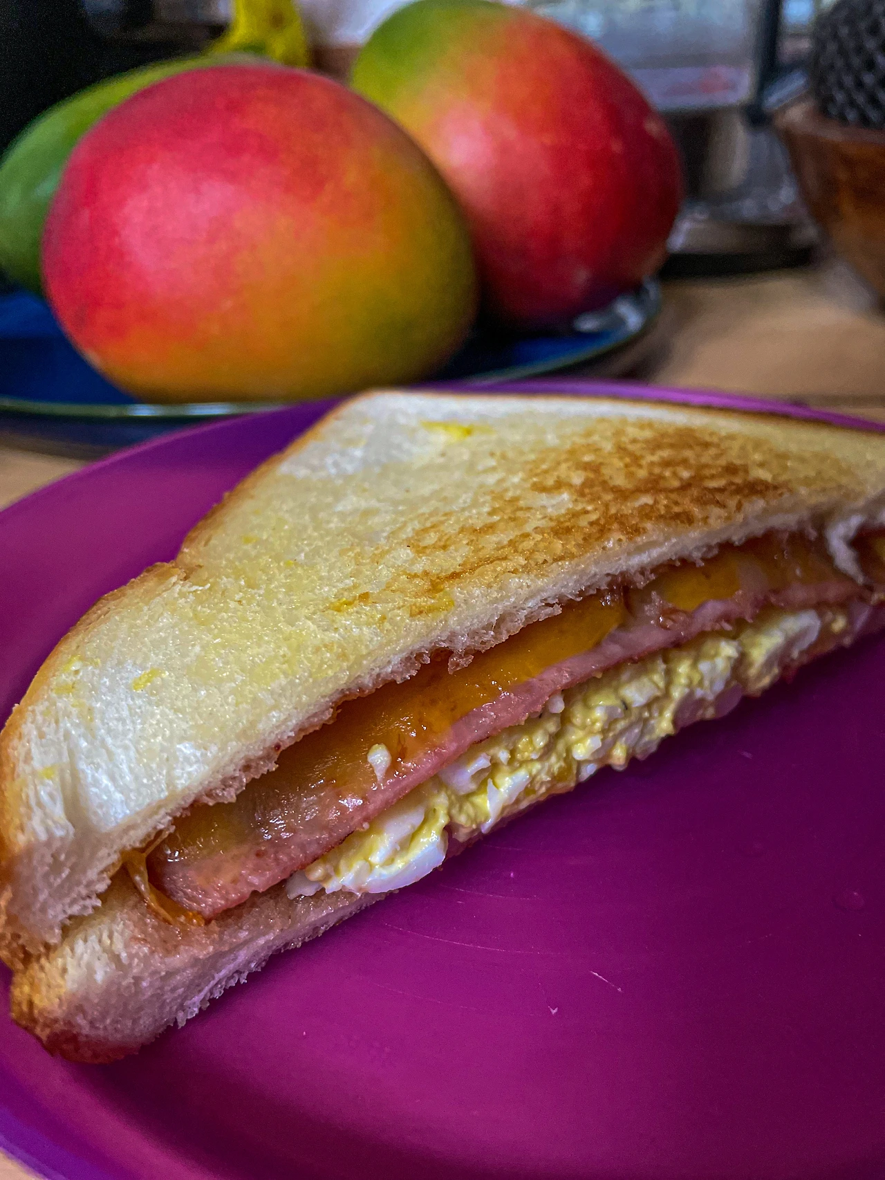 버터 녹인 팬에 식빵을 구워 잼을 바르고 샌드위치용 얇은 햄 부쳐서 계란프라이, 치즈만 얹으면 되니 큰 기술도 필요 없고 손맛을 타는 것도 없어 하이에게도 인기가 좋다.