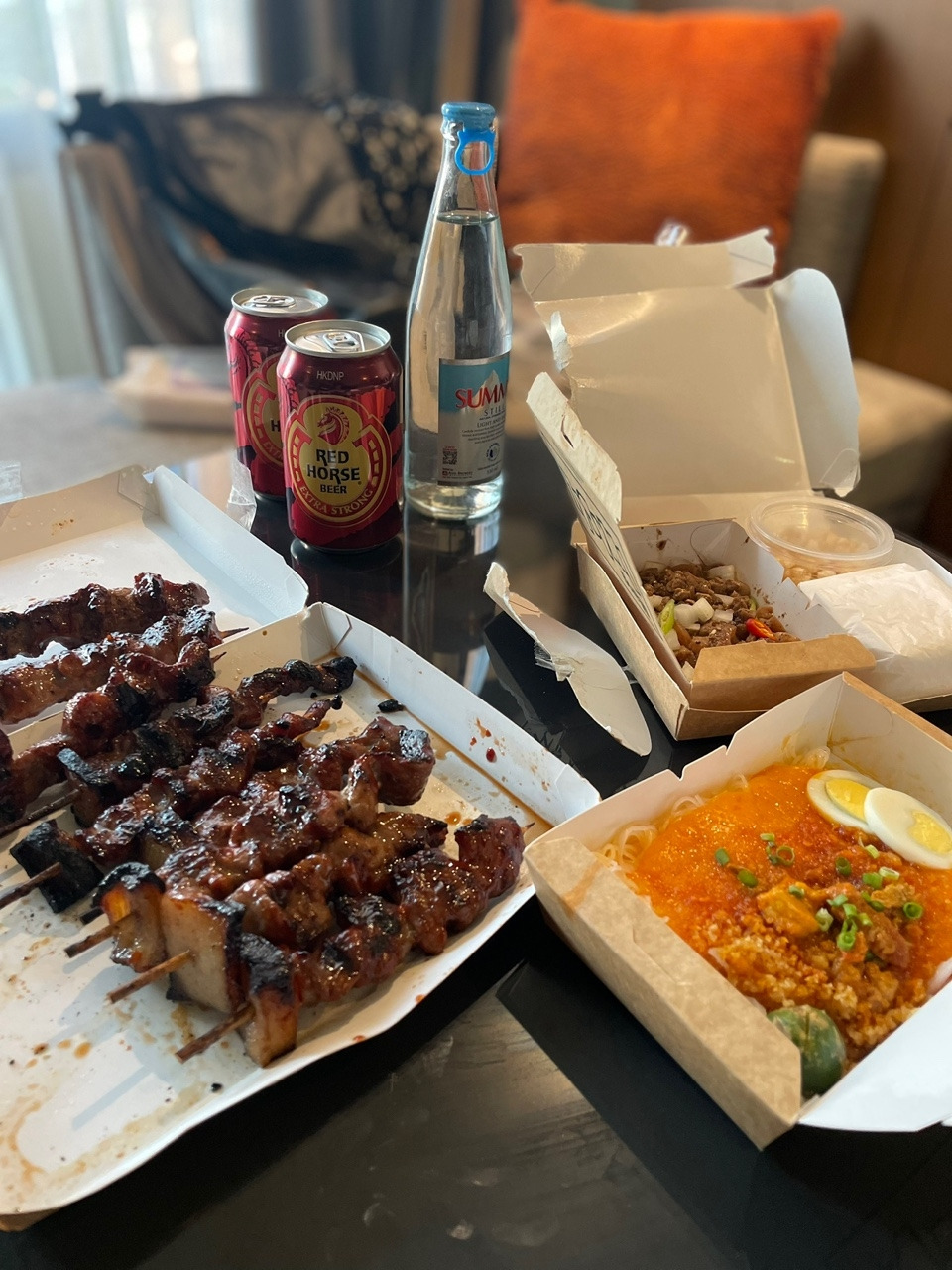 치킨 이나살, 포크바베큐꼬치, sisig 시식, palabok 팔라복, 필리핀 팥빙수인 할로할로를 먹어 봄.