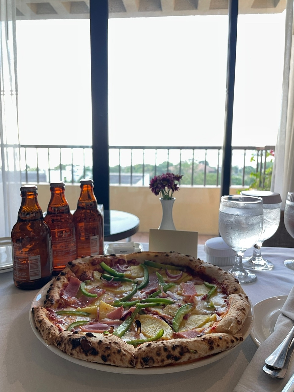 룸서비스 피자는 맛있는데 선셋바에서 먹은 피자는 노맛.