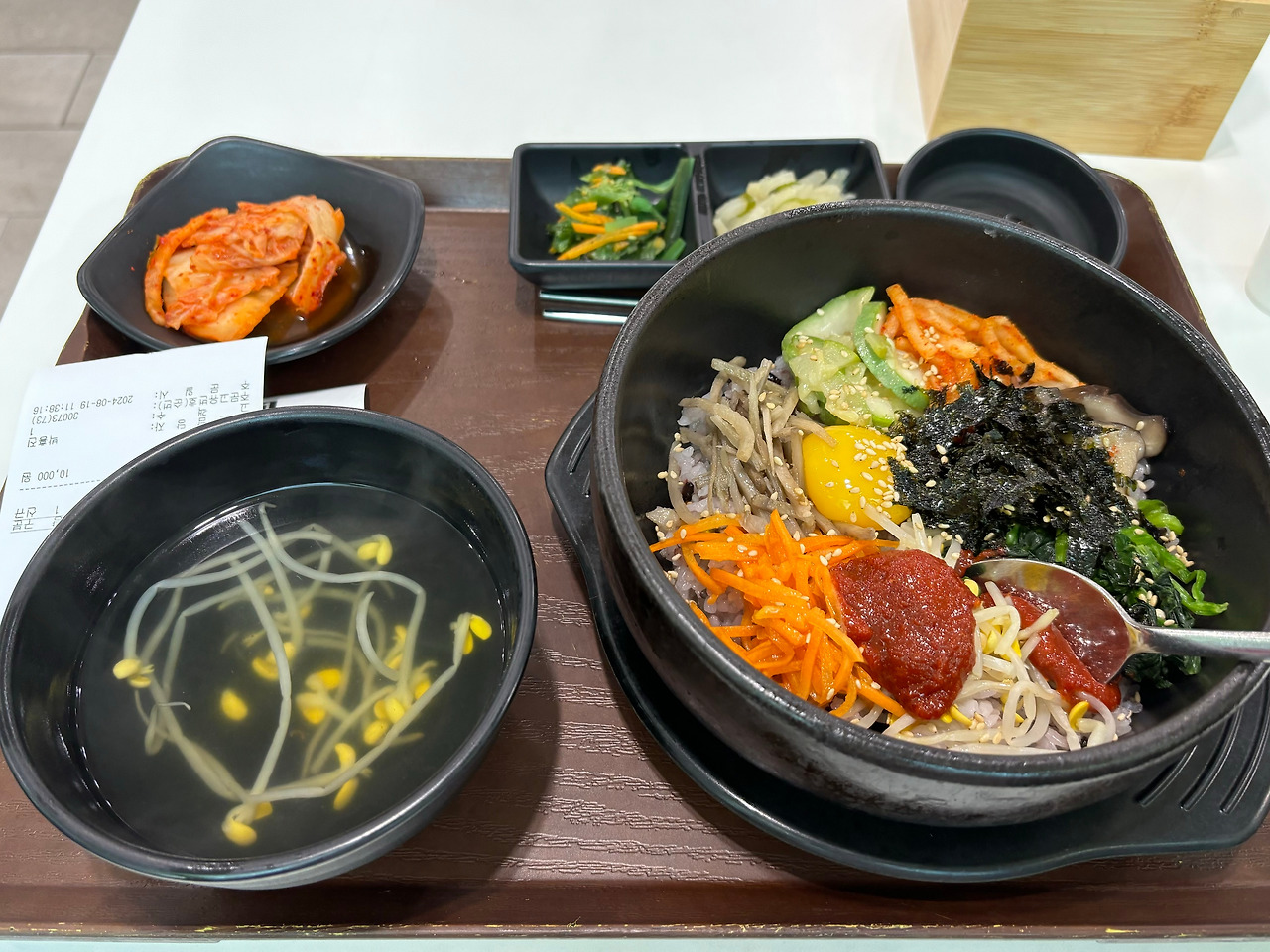 밥도 먹어도 되고 물 먹어도 된다는 허락을 받고 푸드코트로 달려간다. 돌솥비빔밥을 시켜서 한 그릇 먹는다.