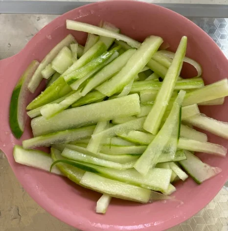 (김밥 4줄에는 오이 2개는 미리 손질해놔야 한다. )