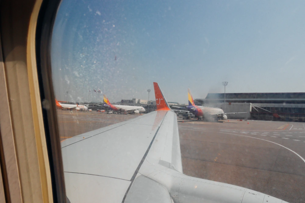 회사의 눈치를 보며 겨우 여름휴가를 승낙받은 뚝방이와 프로젝트 회의 중 “이번 휴가는 다들 미루도록 해라”라고 통보한 이사님의 말을 뒤로 하고 떠나는 나… 아침 비행기라 5시부터 일어나 뚝방이를 픽업하고 김포공항으로 향한다. 9시 20분 비행기를 기다리며 대충 끼니를 때우며 지나가는 사람들을 구경하였다.