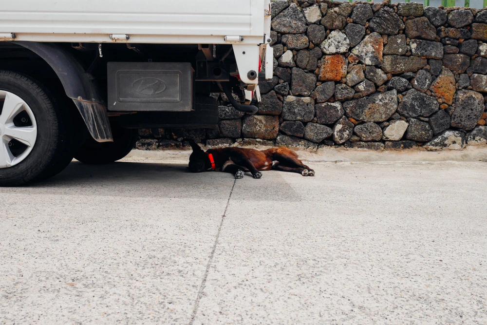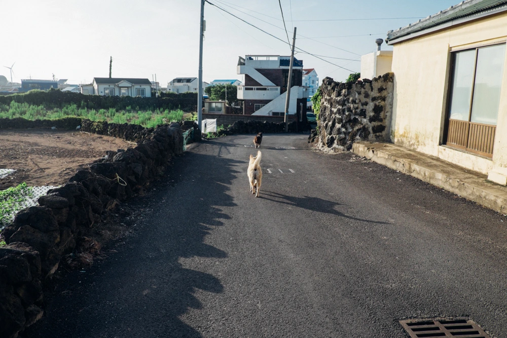 제주에선 개들이 가고 싶은 곳을 맘껏 돌아다니고 자고 싶을 때 자고 심심하면 동네 가운데 있는 큰 나무 그늘 밑에선 친구들과 만난다. 제주도의 개들은 정말 자유롭고 행복해 보였다. 또 어찌나 순하던지 바로 옆까지 가도 신경도 안 쓴다.