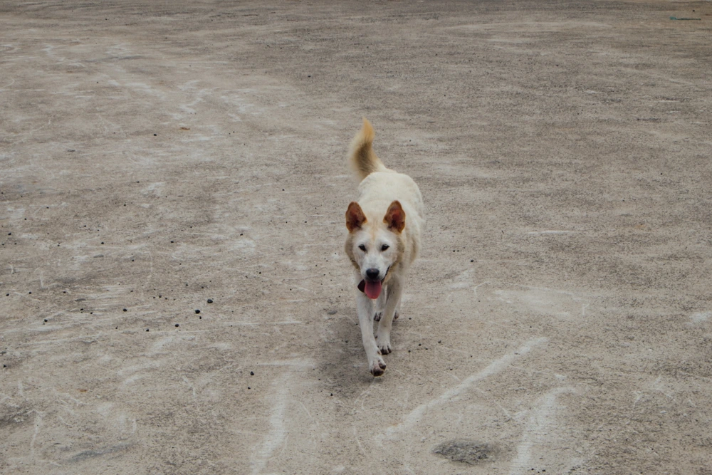 갑자기 멀리서 총총총 뛰어오는 백구 한 마리... 무언가 먹을걸 얻어먹으려 오는 것 같지만,